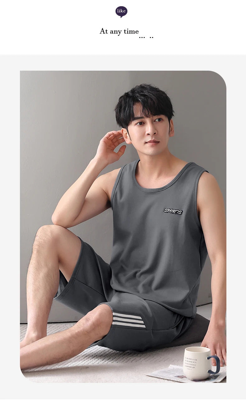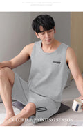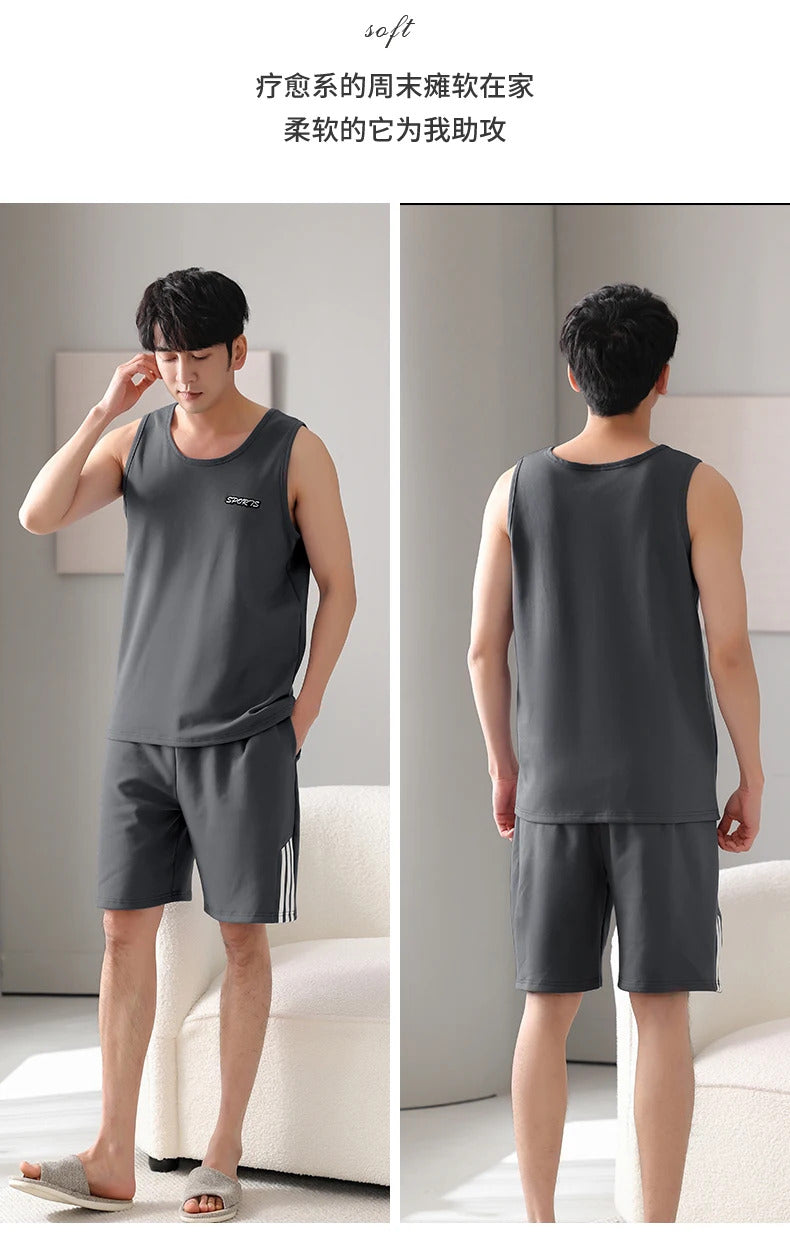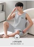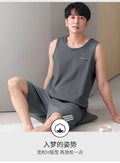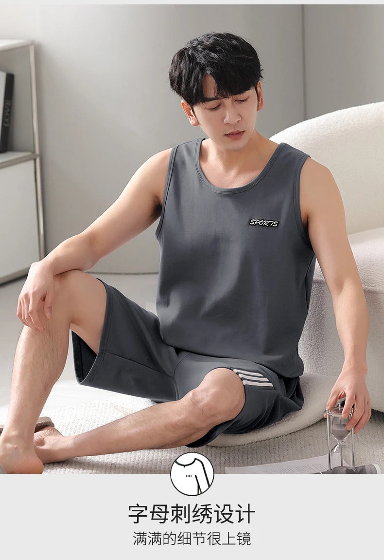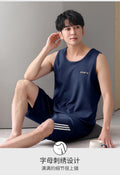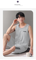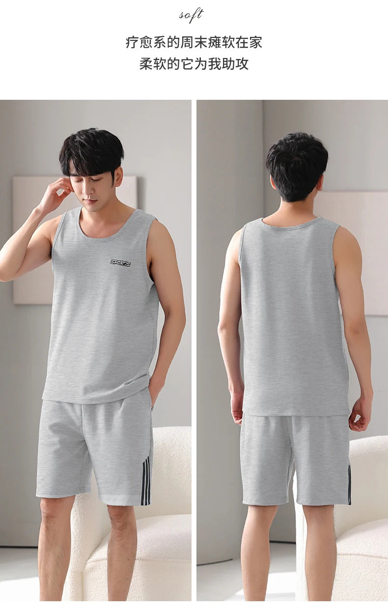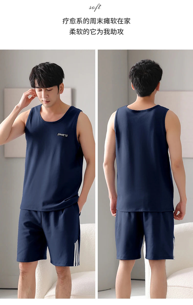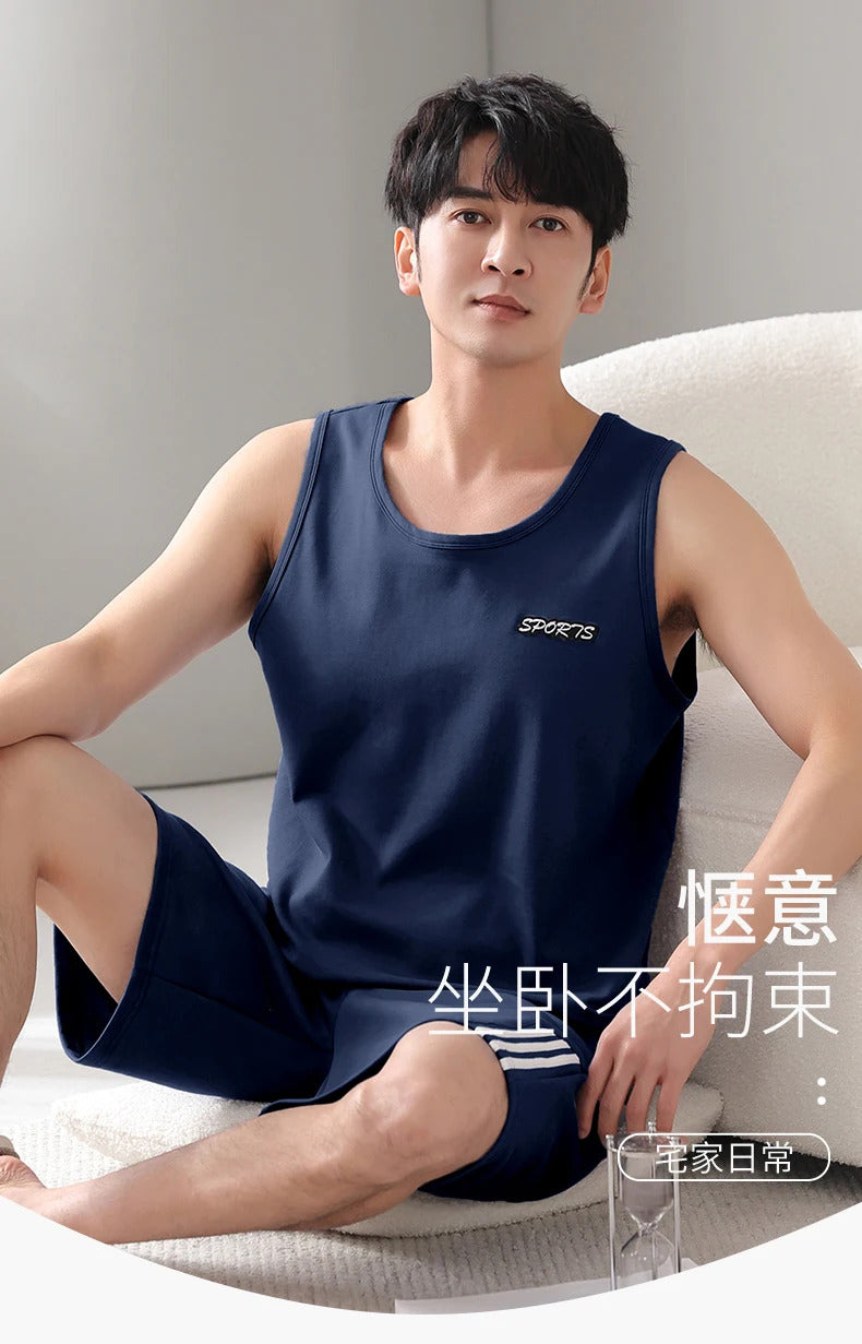 睡衣男Summer Plus 7XL Knitted Pjs Sleeveless Mens Pajama Sets Male Pajamas Plaid Loungewear For Masculine Sleepwear Homewear Fashion