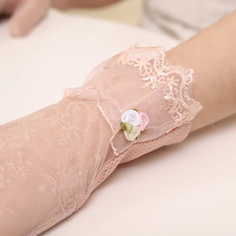 防晒手套女Summer Sexy Lace Women Sunscreen Touch Screen Gloves Ice Silk Thin Breathable Mesh Anti-UV Female Skid Driving Exquisite