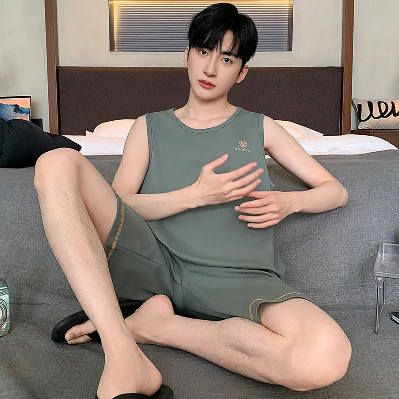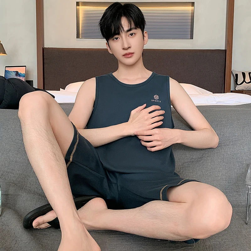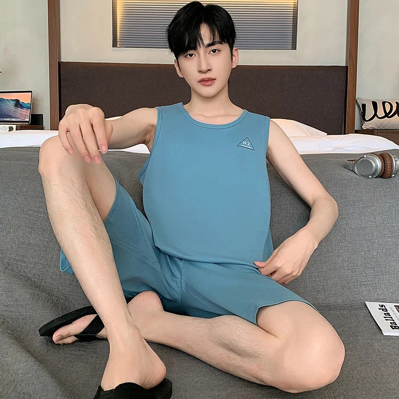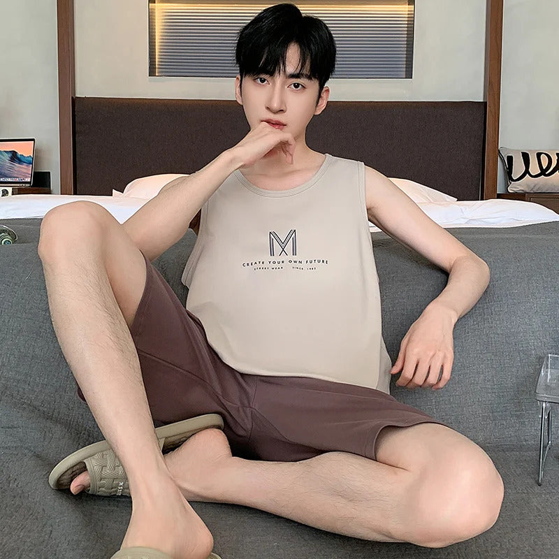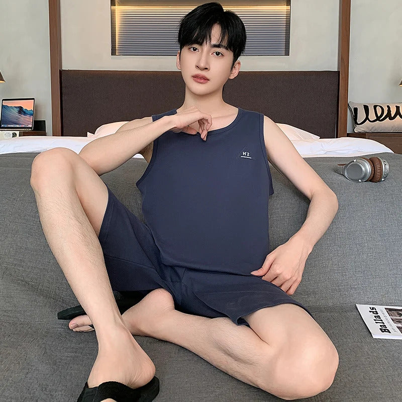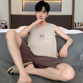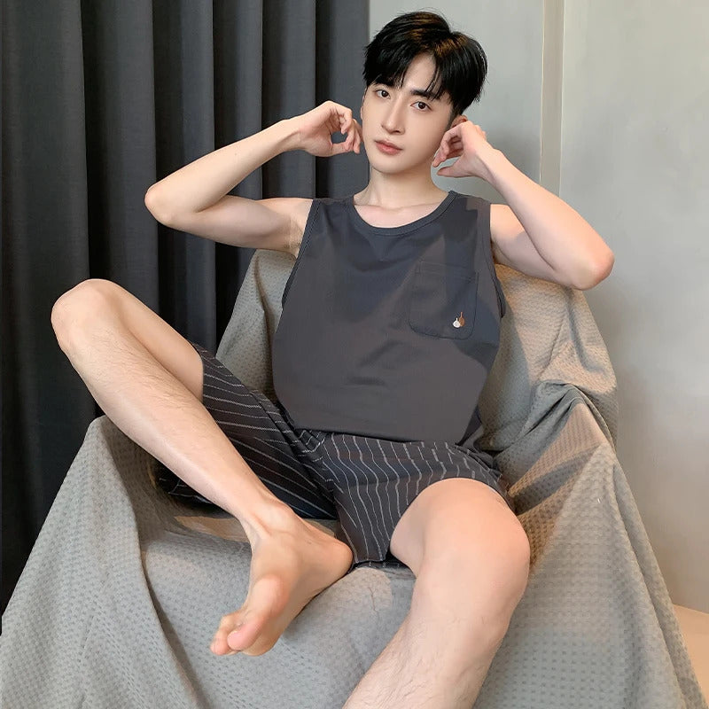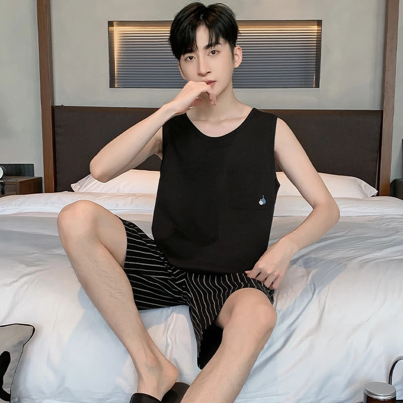 Summer Sleeveless Two Piece Set Men Pajamas Summer Soft Cotton Pajama Sets for Man Plaid Pants Pjs Fashion Man Sleepwear