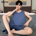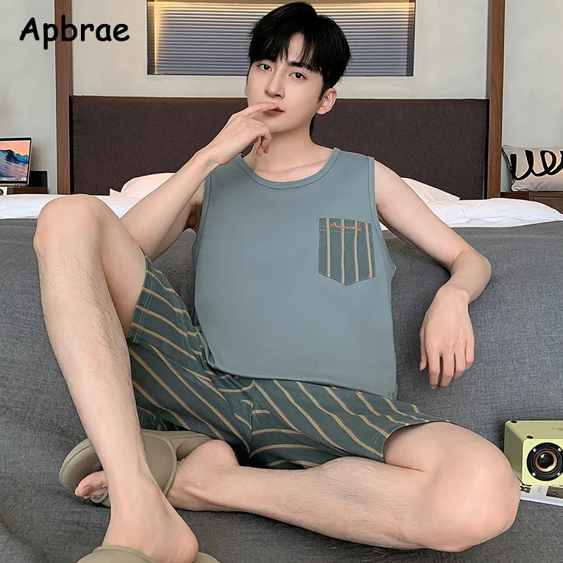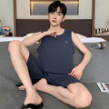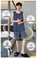 睡衣男Summer Sleeveless Two Piece Set Men Pajamas Summer Soft Cotton Pajama Sets for Man Plaid Pants Pjs Fashion Man Sleepwear
