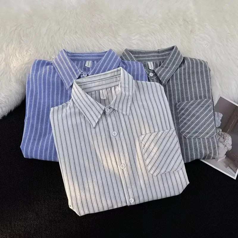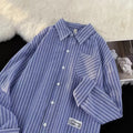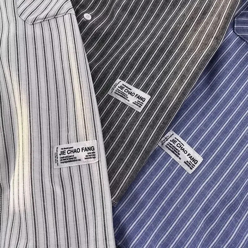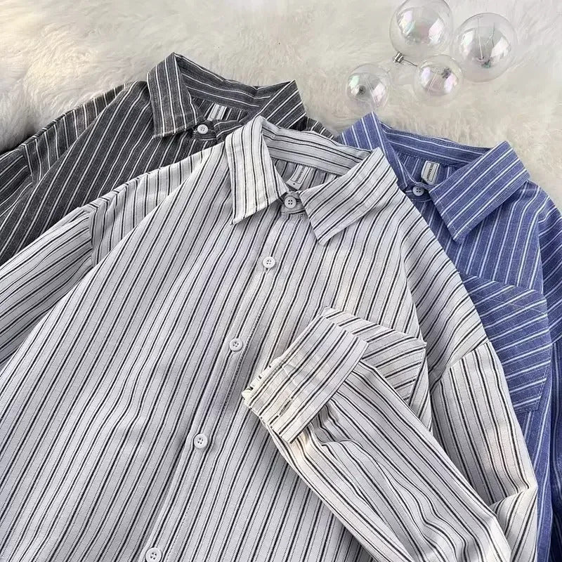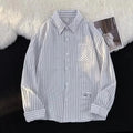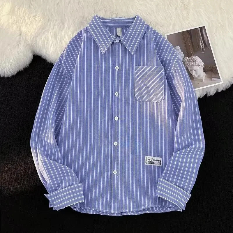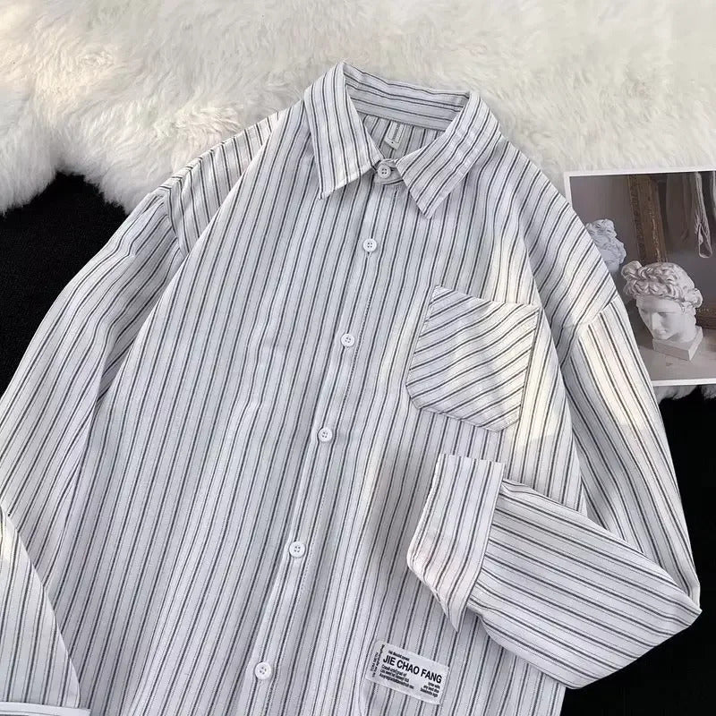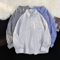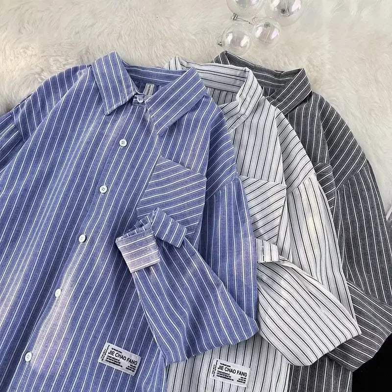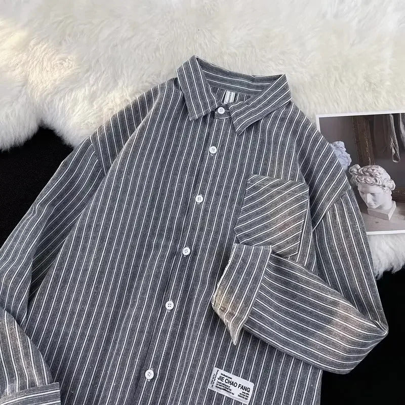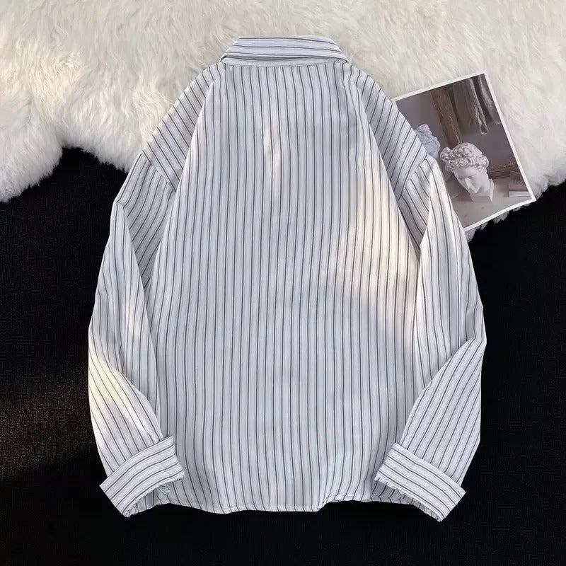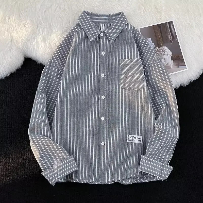 衬衫男Summer Striped Shirt Men's Long Sleeve Hong Kong Style Vintage Cool Japanese Loose-Fit Casual Versatile Trendy Jacket