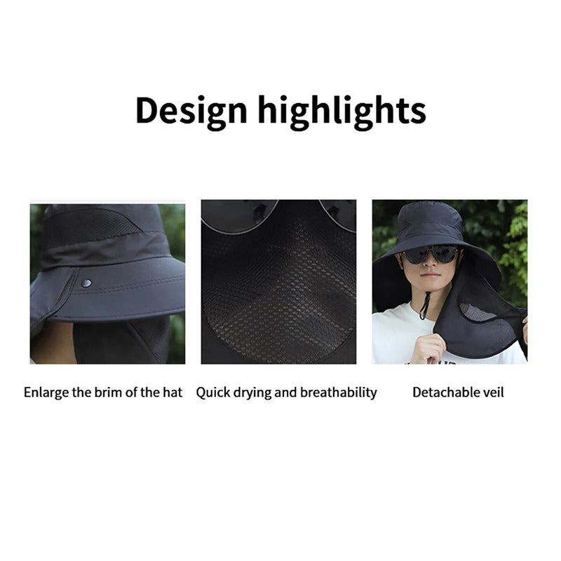 防晒帽男Summer Sun Hats UV Protection Outdoor Hunting Fishing Cap for Men Hiking Camping Visor Bucket Hat Removable Fisherman Hat