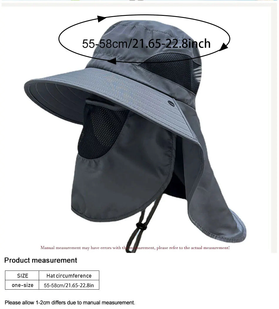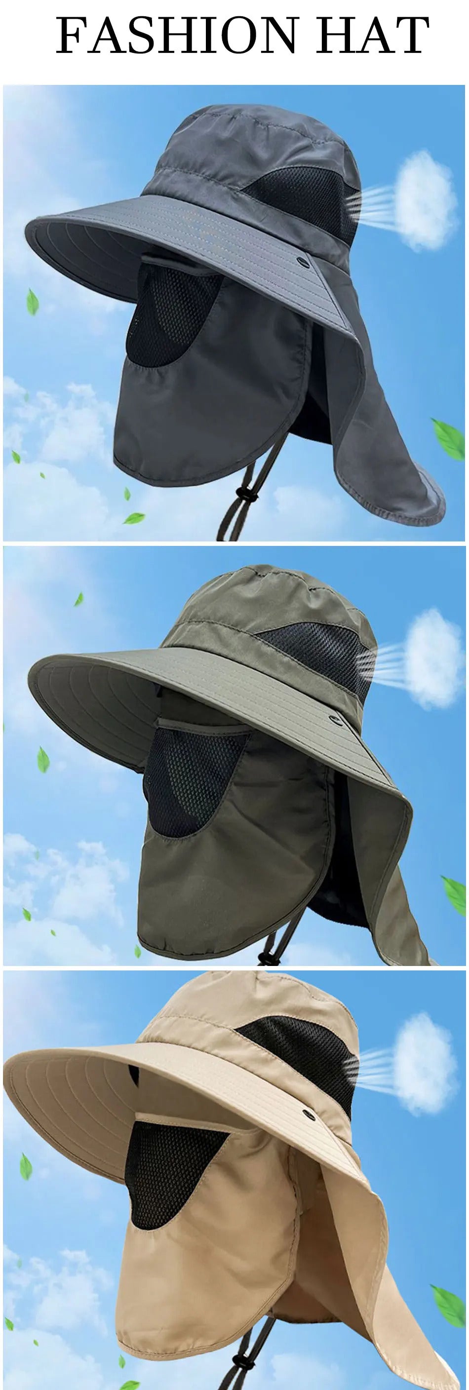 防晒帽男Summer Sun Hats UV Protection Outdoor Hunting Fishing Cap for Men Women Hiking Camping Visor Bucket Hat Neck Flap Fisherman Hat
