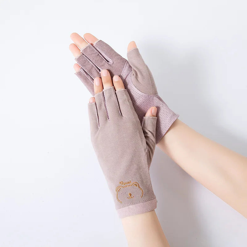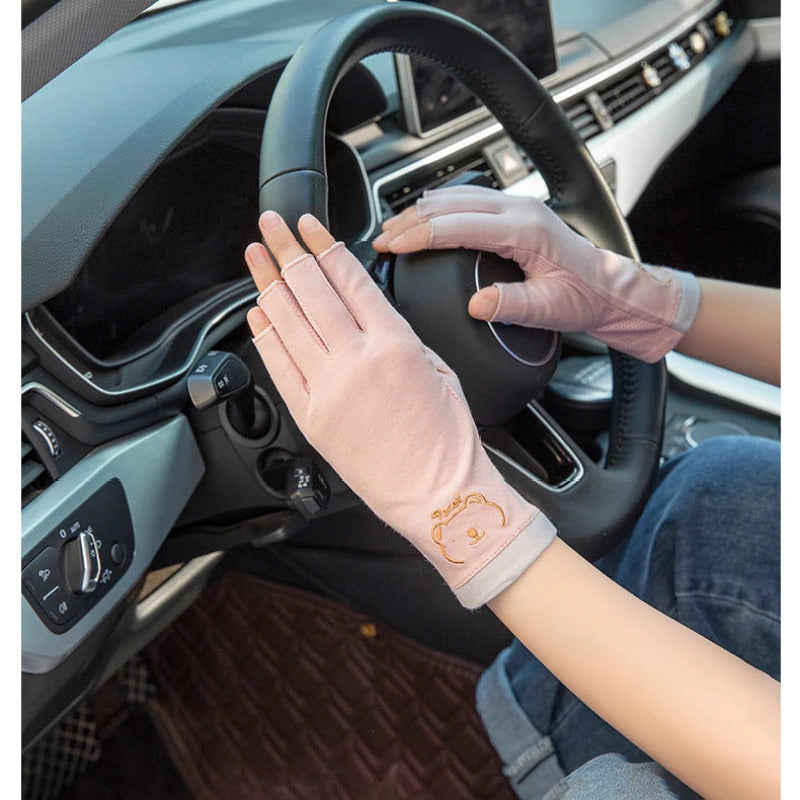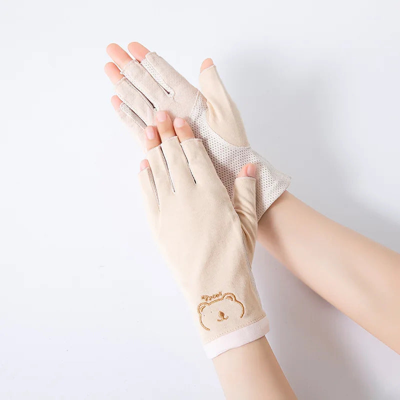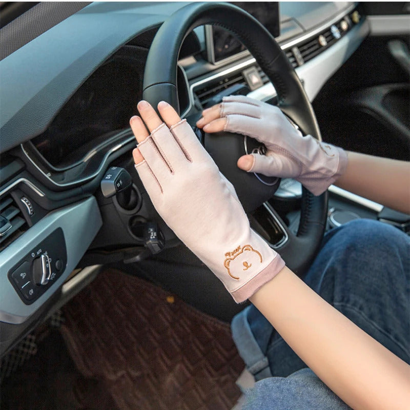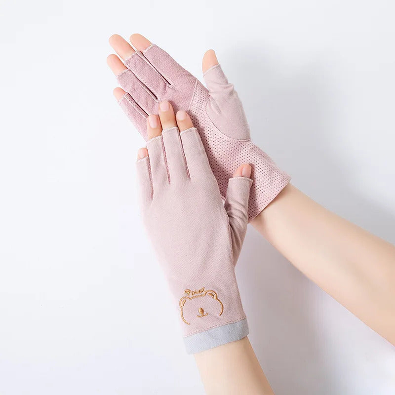 防晒手套女Summer Women Cotton Sunscreen Touch Screen Anti-UV Non-Slip Breathable Cute Lovely Drive Cycling Half Finger Gloves