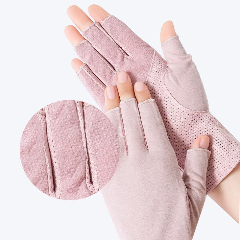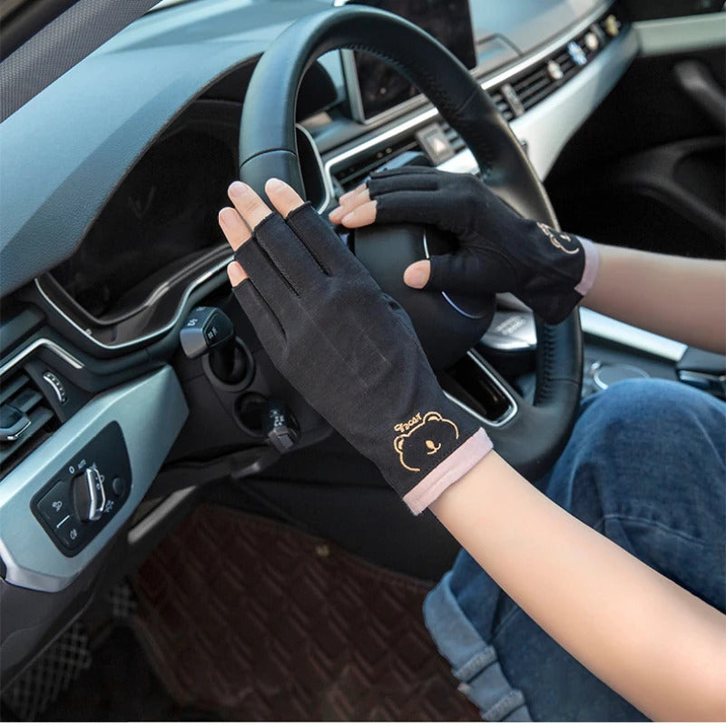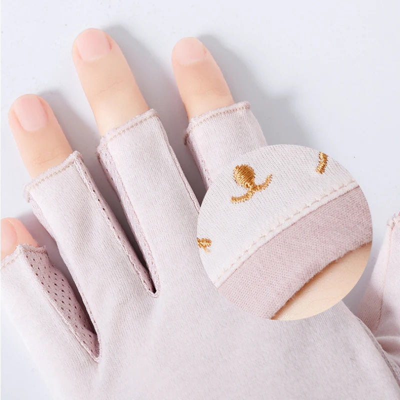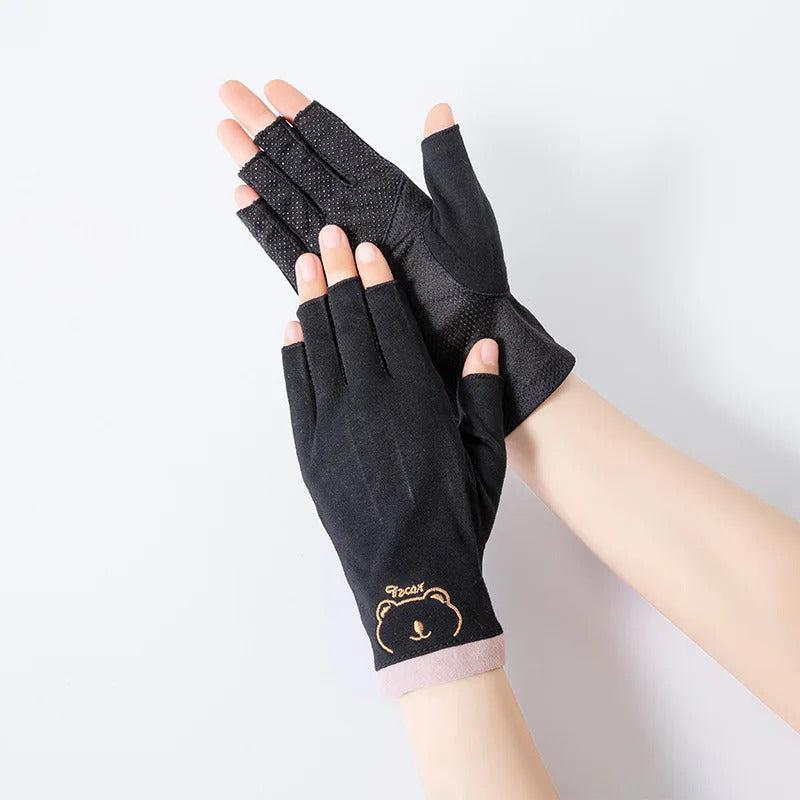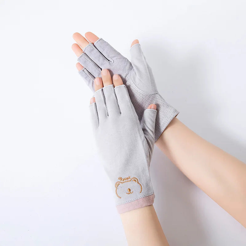 防晒手套女Summer Women Cotton Sunscreen Touch Screen Anti-UV Non-Slip Breathable Cute Lovely Drive Cycling Half Finger Gloves