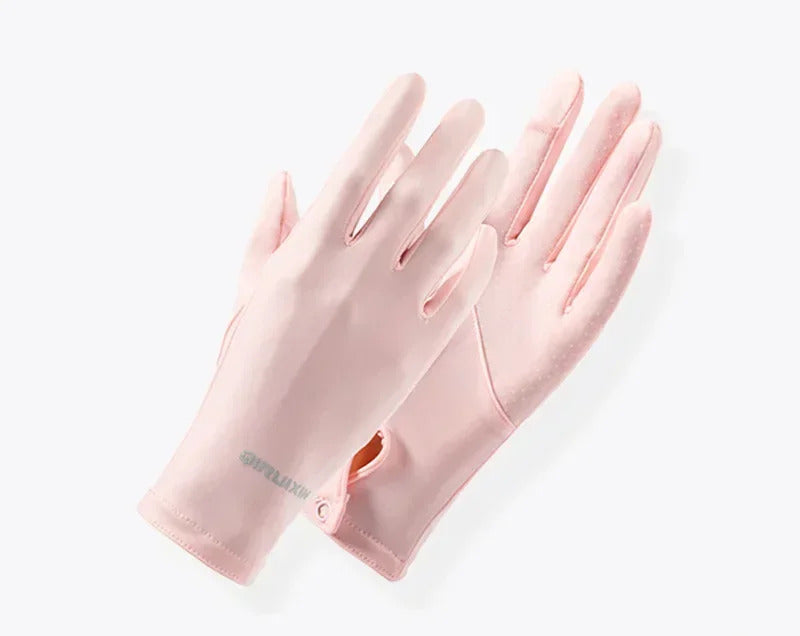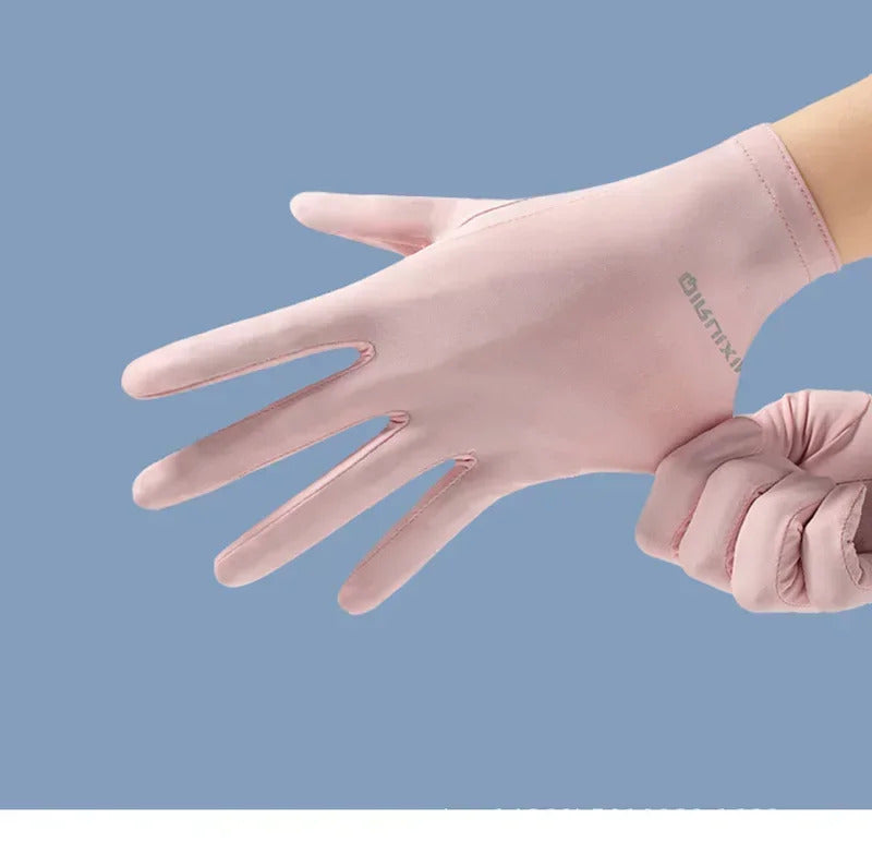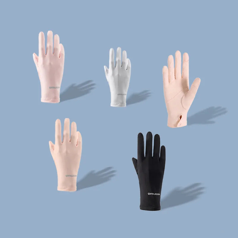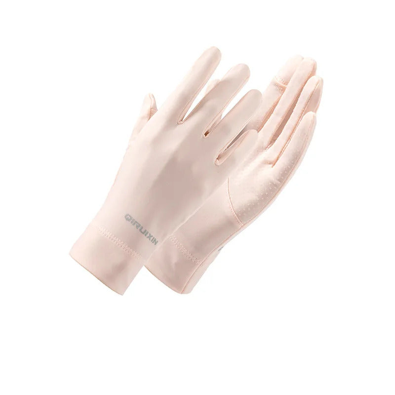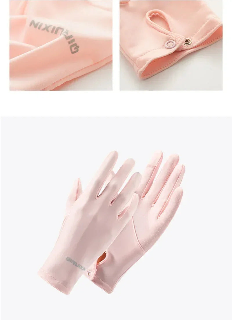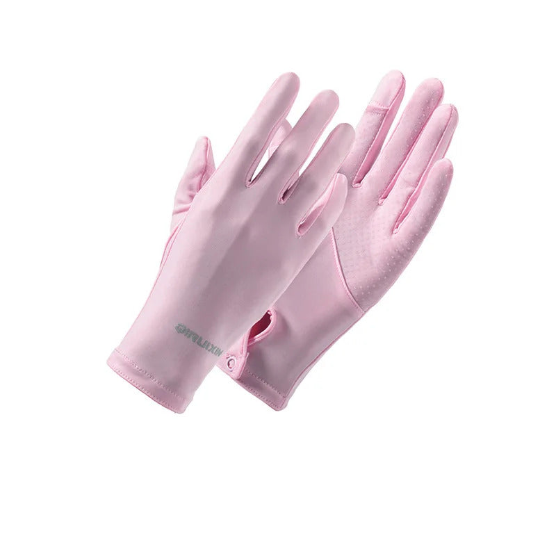 防晒手套女Summer Women Thin Ice Silk Lace Letter Button Touch Screen Driving Mittens UV Sunscreen Sport Cycling Non-slip Sun Gloves I45