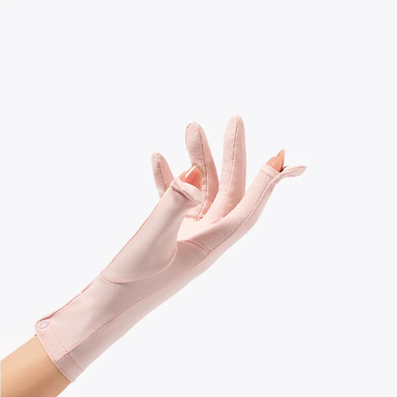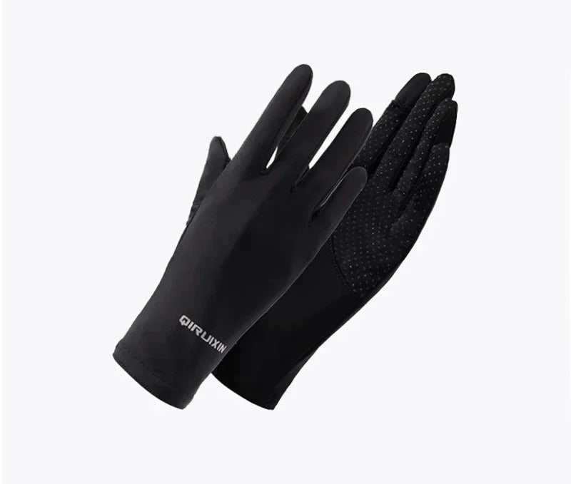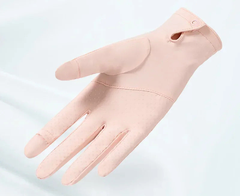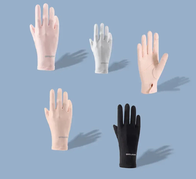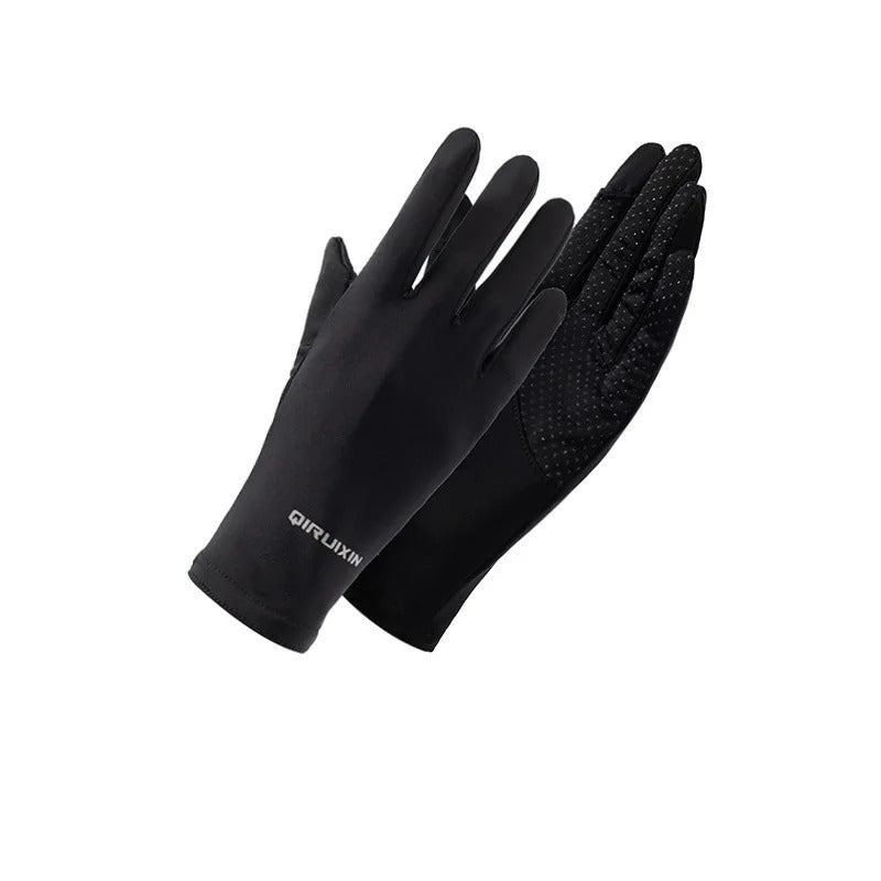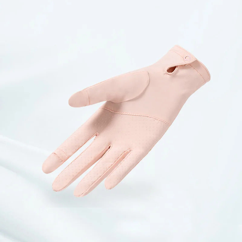 防晒手套女Summer Women Thin Ice Silk Lace Letter Button Touch Screen Driving Mittens UV Sunscreen Sport Cycling Non-slip Sun Gloves I45