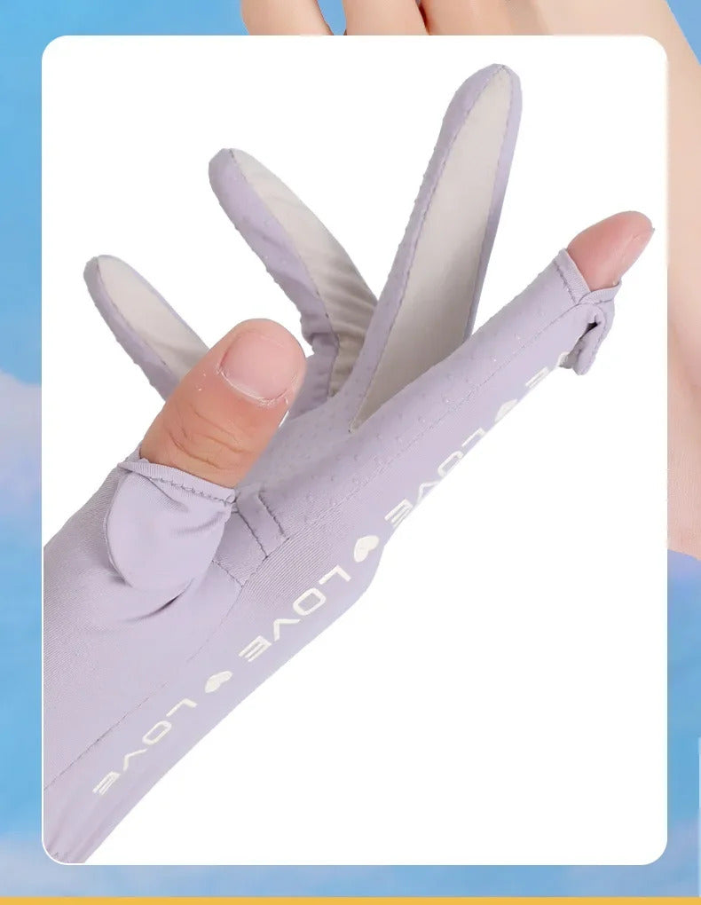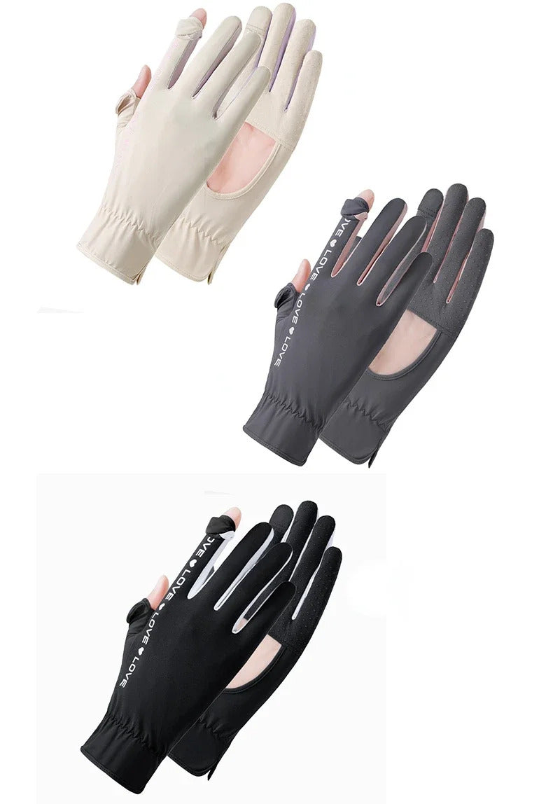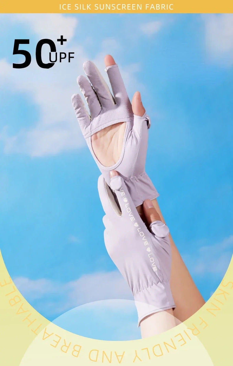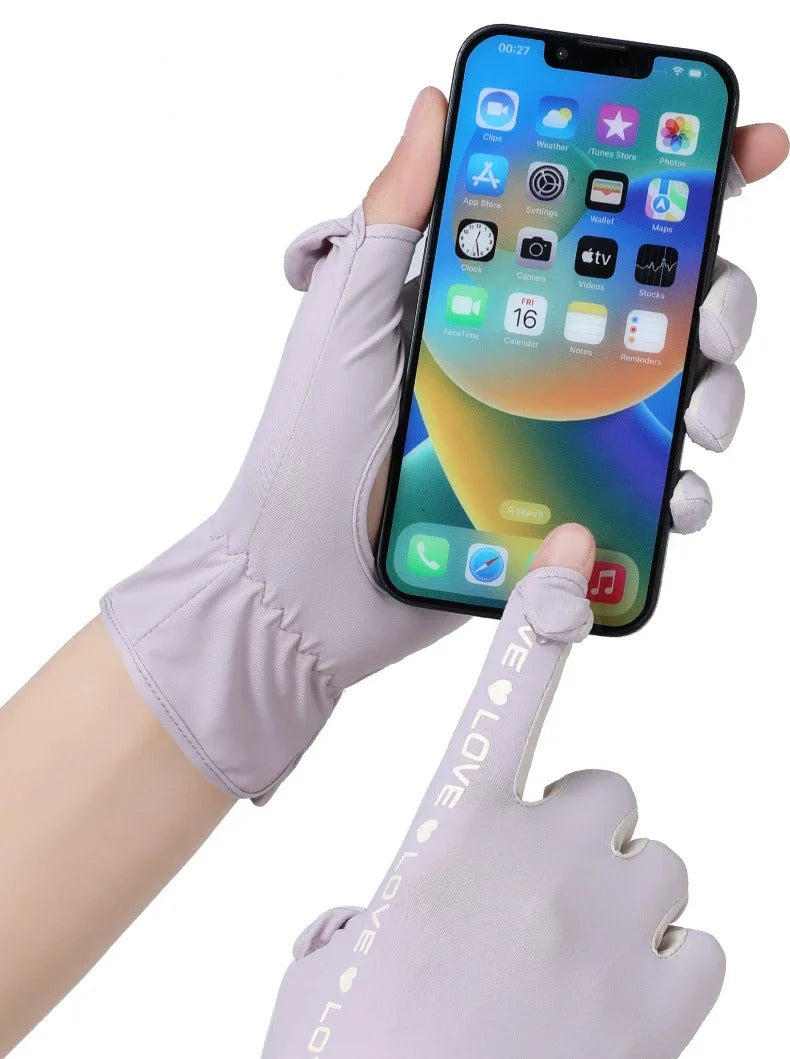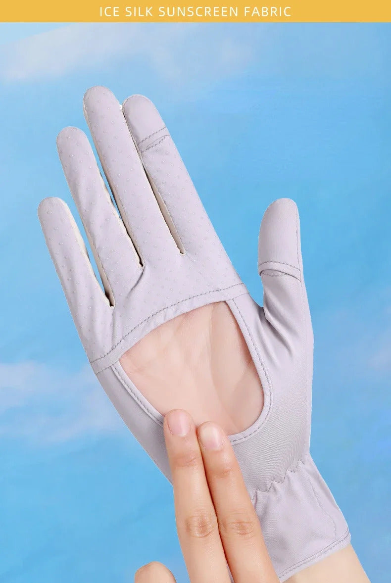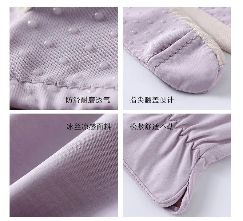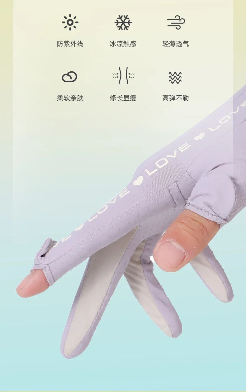 防晒手套女Sunscreen Gloves Summer Women Outdoor Fitness Ice Silk Gloves Hollowed Out Palm Breathable Elastic Touch Screen Cycling Gloves