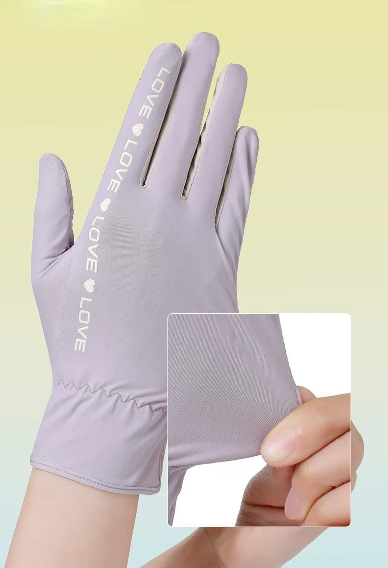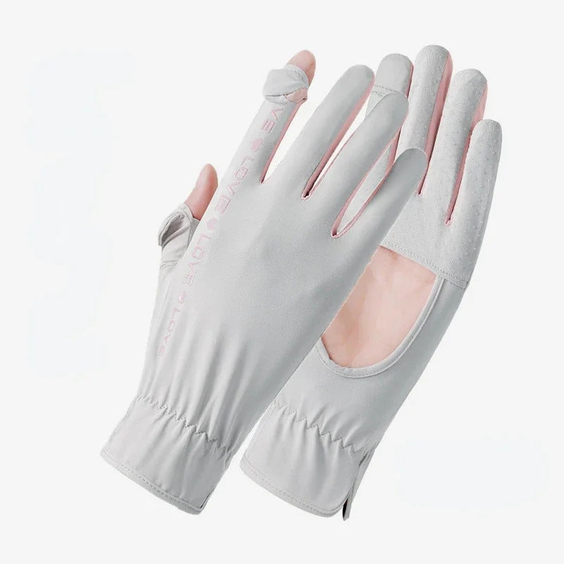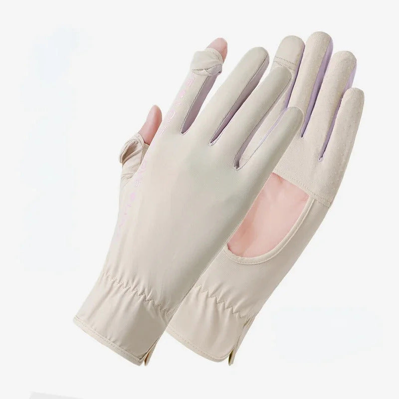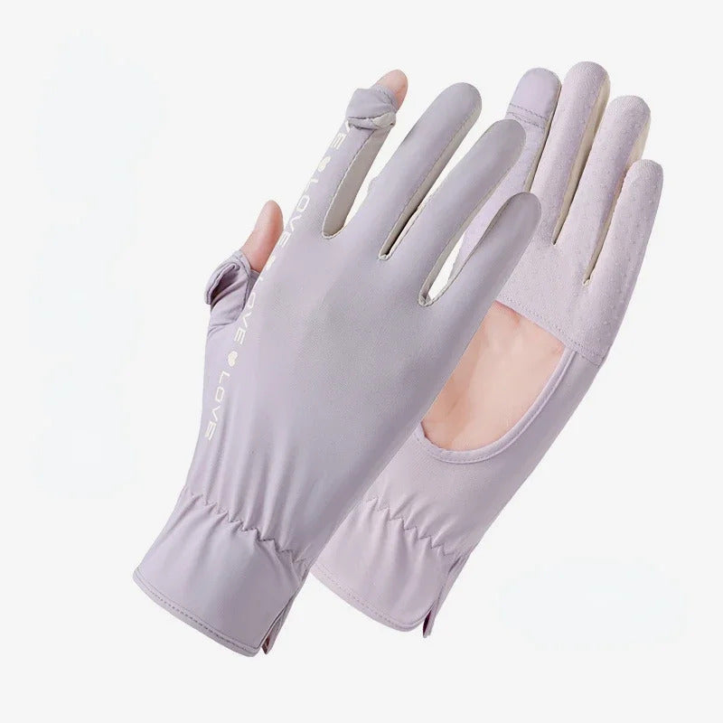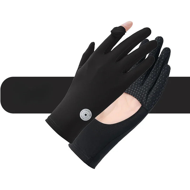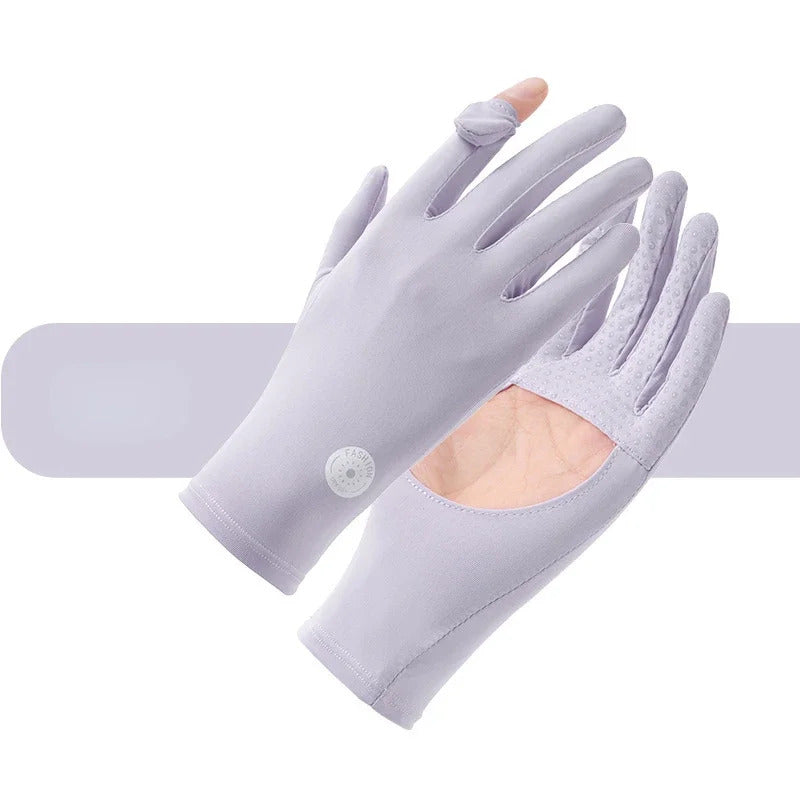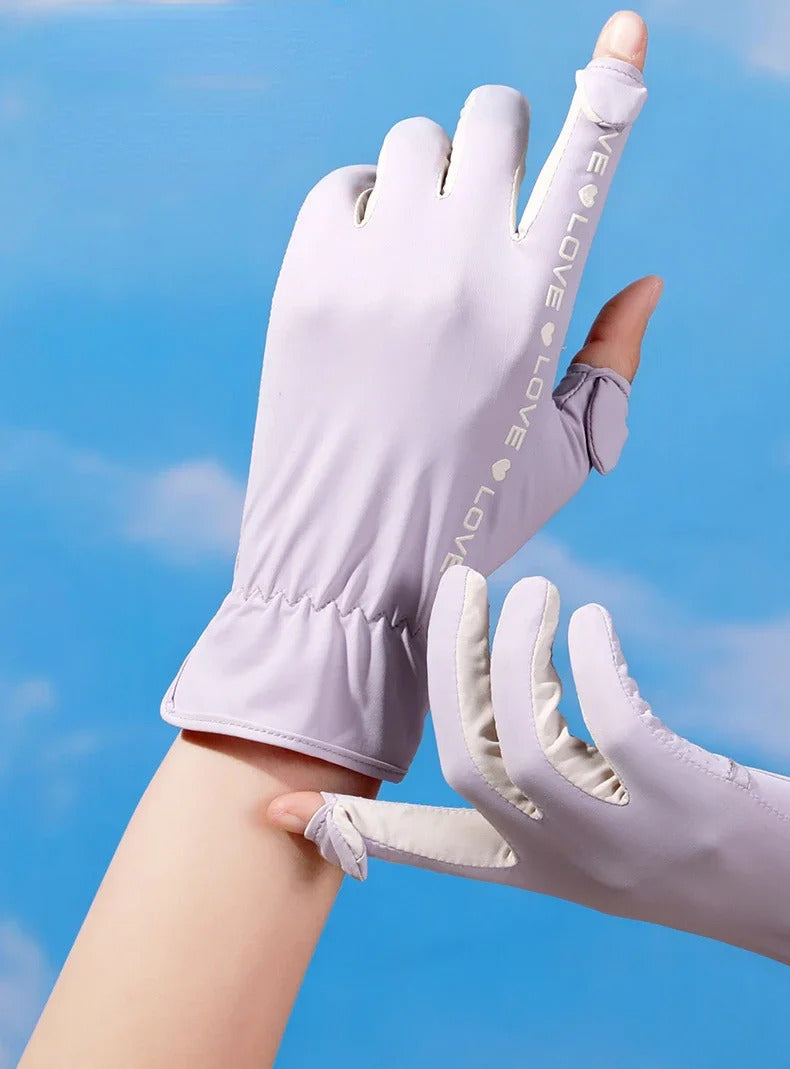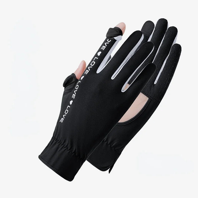 防晒手套女Sunscreen Gloves Summer Women Outdoor Fitness Ice Silk Gloves Hollowed Out Palm Breathable Elastic Touch Screen Cycling Gloves