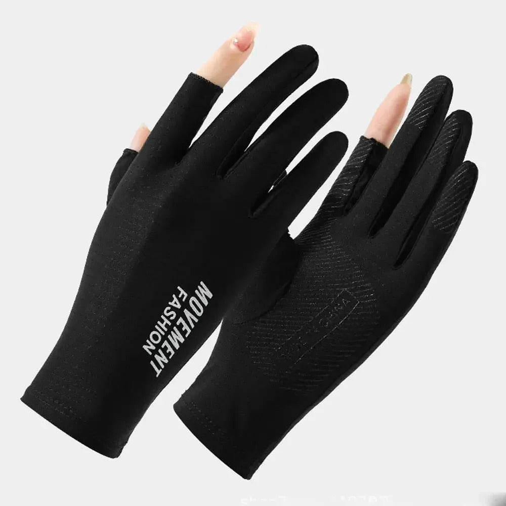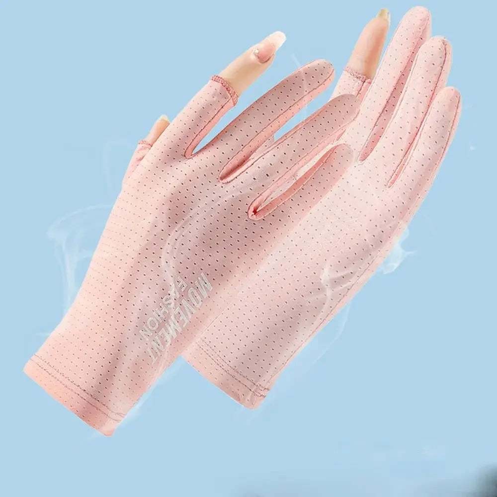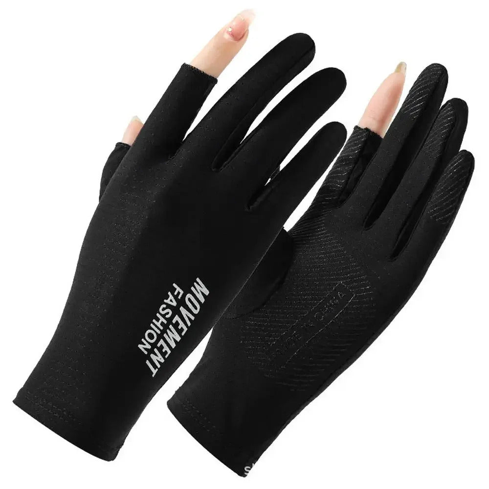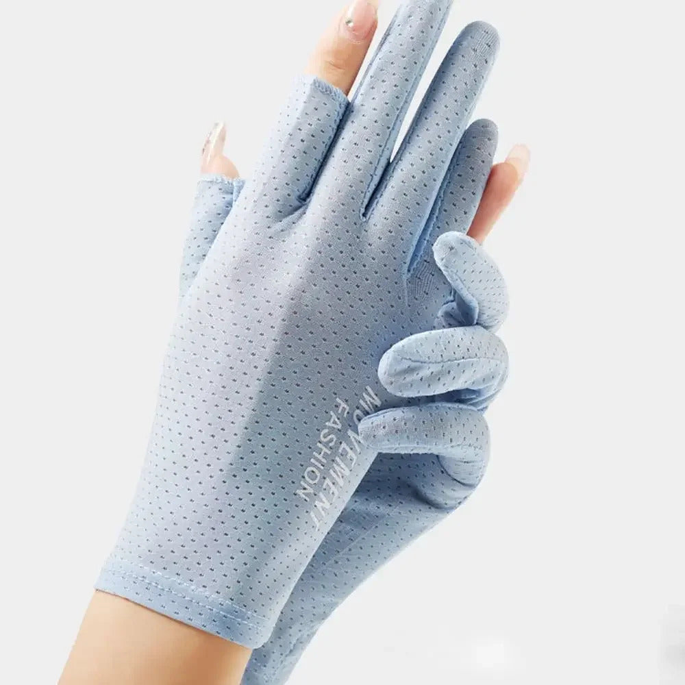 防晒手套女Sunscreen Mittens Ice Silk Two Fingers Gloves Women Breathable Thin Fingerless Gloves Summer Outdoor Riding Driving Gloves