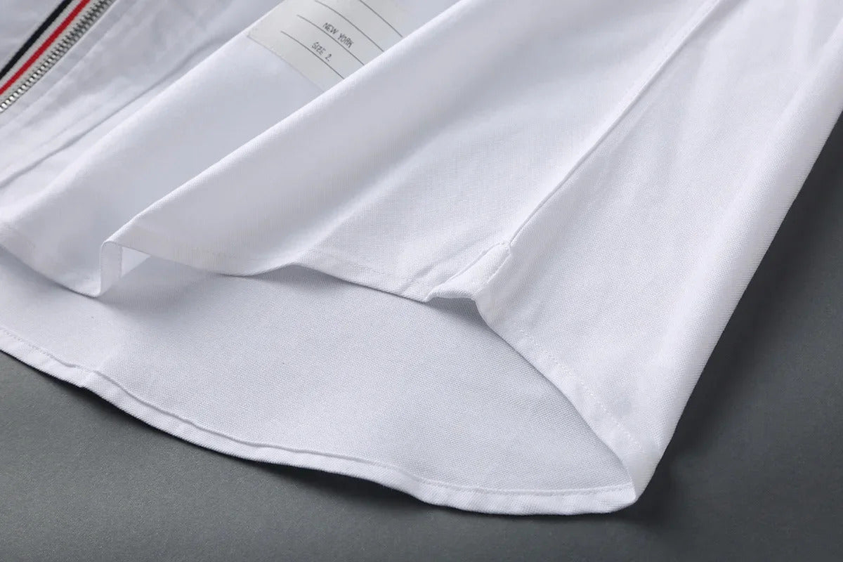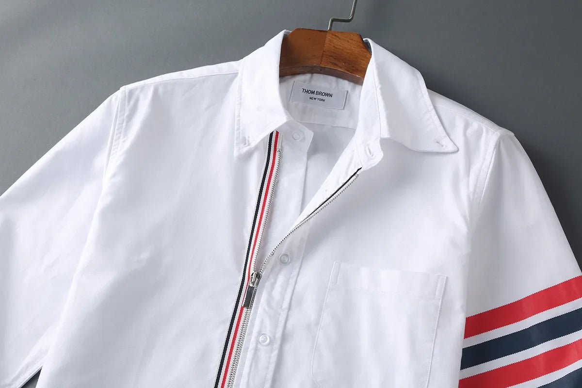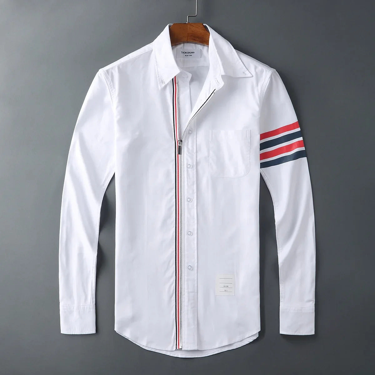 衬衫男Tb Jltrendy Brand Casual Oxford Cloth Striped Zipper Cardigan Jacket Single Sleeve Men Women's Fashion Similar Style