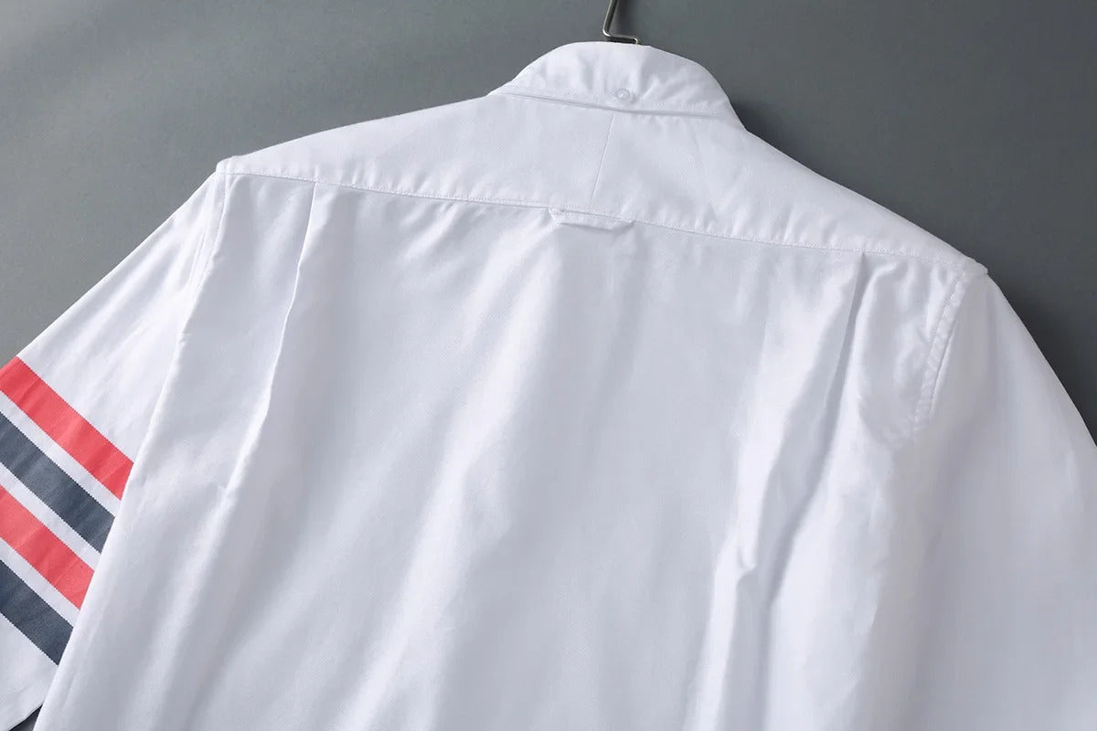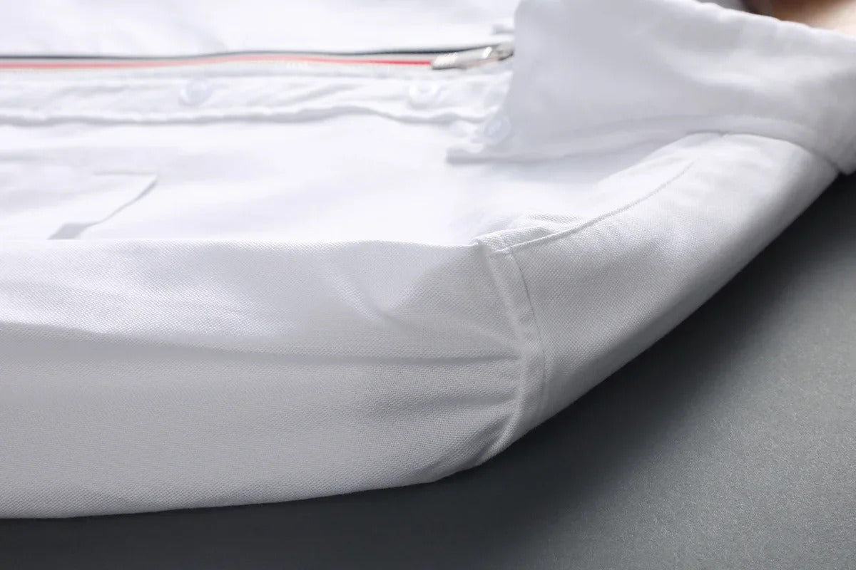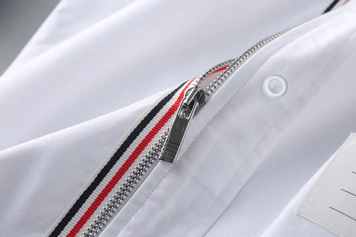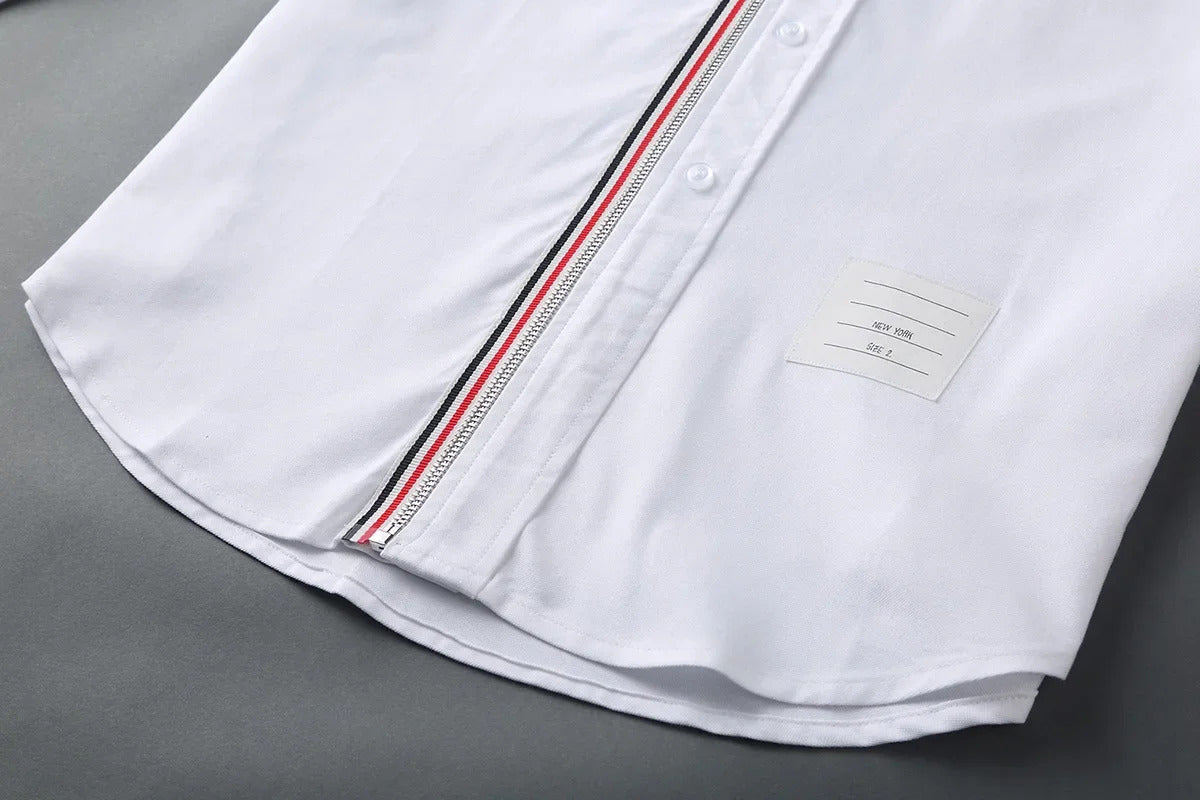 衬衫男Tb Jltrendy Brand Casual Oxford Cloth Striped Zipper Cardigan Jacket Single Sleeve Men Women's Fashion Similar Style