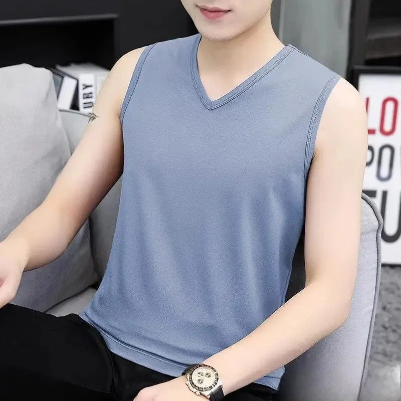 • Versatile Design : With its solid color and V-neck design, this sleeveless t-shirt is versatile enough to be worn in various settings, from sports to casual gatherings.