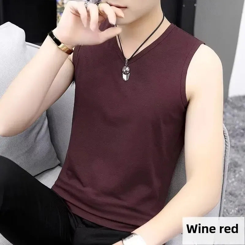 男士背心Teenage Solid Color Men's V-Neck Vest Summer Breathable Sports Fitness Tight Sleeveless T-Shirt Shoulder Vest Sweatshirt Wholesa
