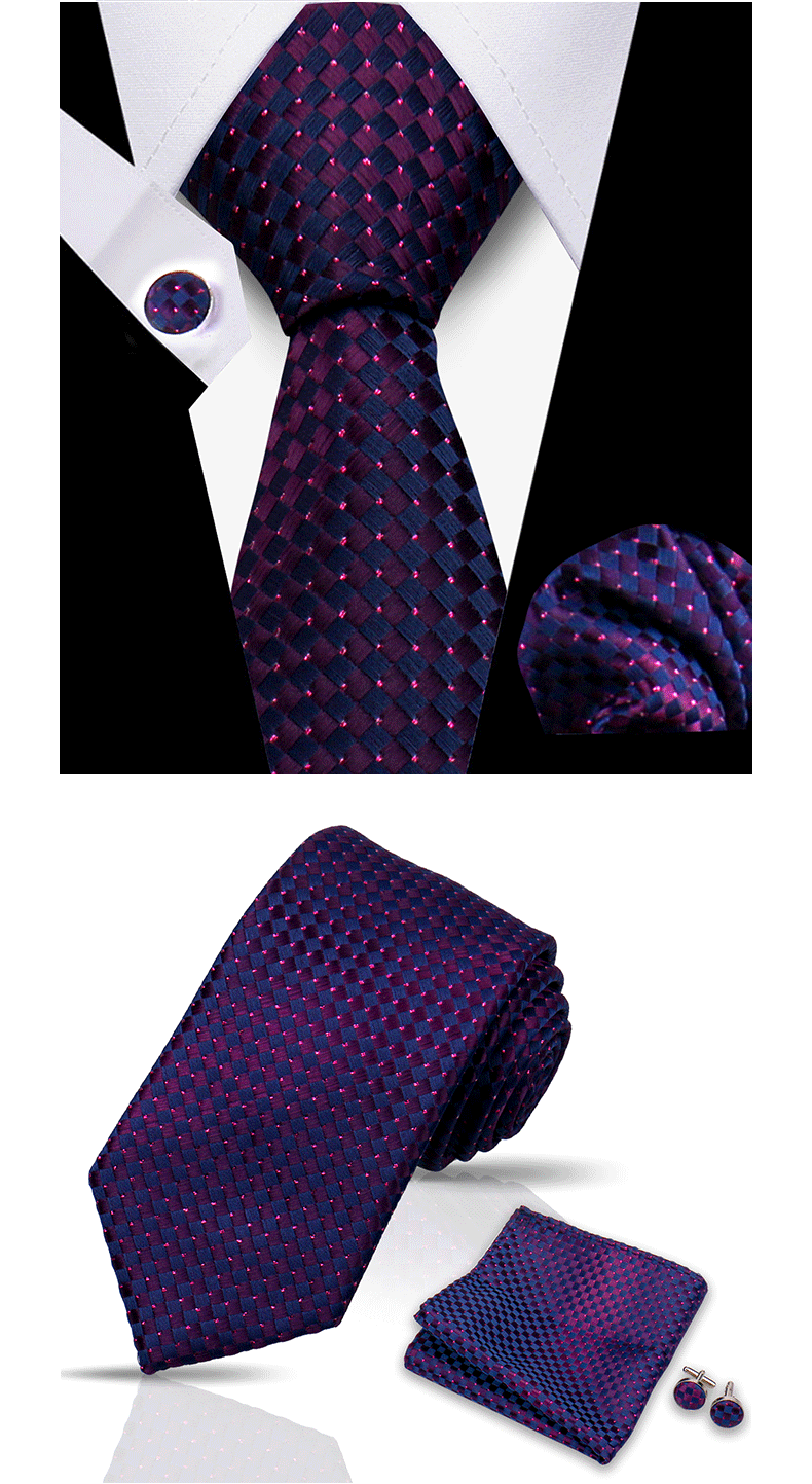 Tie For Men Classic Plaid Handkerchiefs Red Necktie Cufflinks For Men Blouse Business Wedding Accessories Women Collar Man Gift