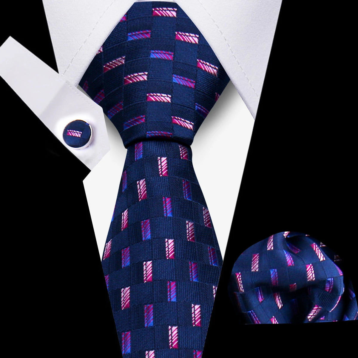 领带男Tie For Men Classic Plaid Handkerchiefs Red Necktie Cufflinks For Men Blouse Business Wedding Accessories Women Collar Man Gift