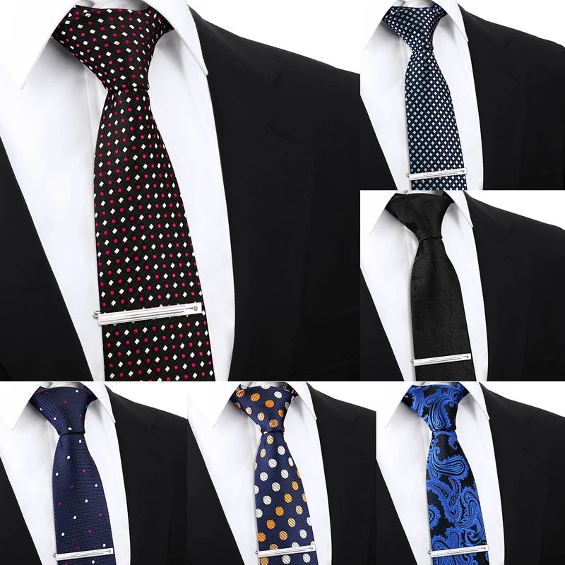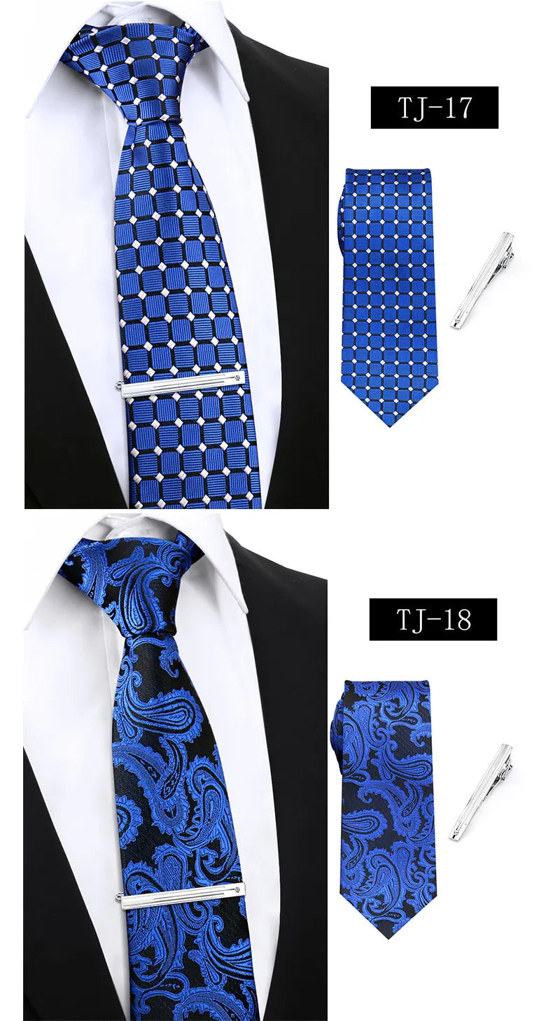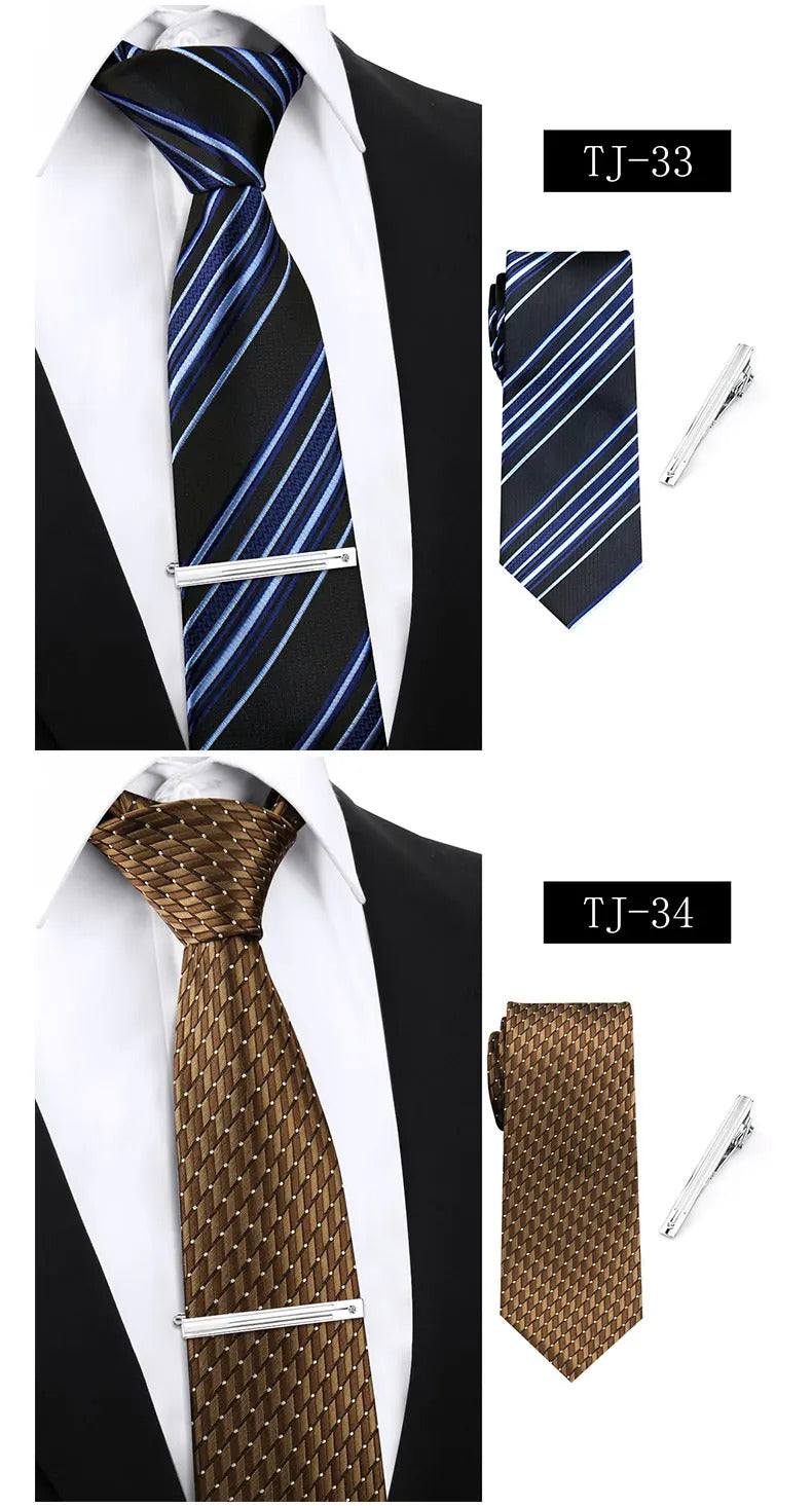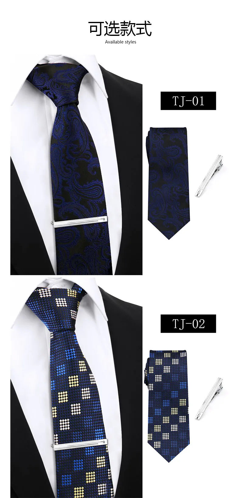 领带男Tie Men Business Necktie Clip Set Fashion Man Tie Clip Fixed Suit Wedding Accessories High Quality 2pc Set Classic Formal Cravat