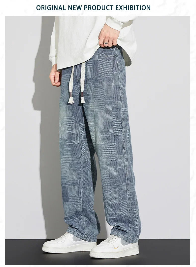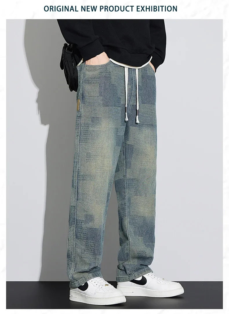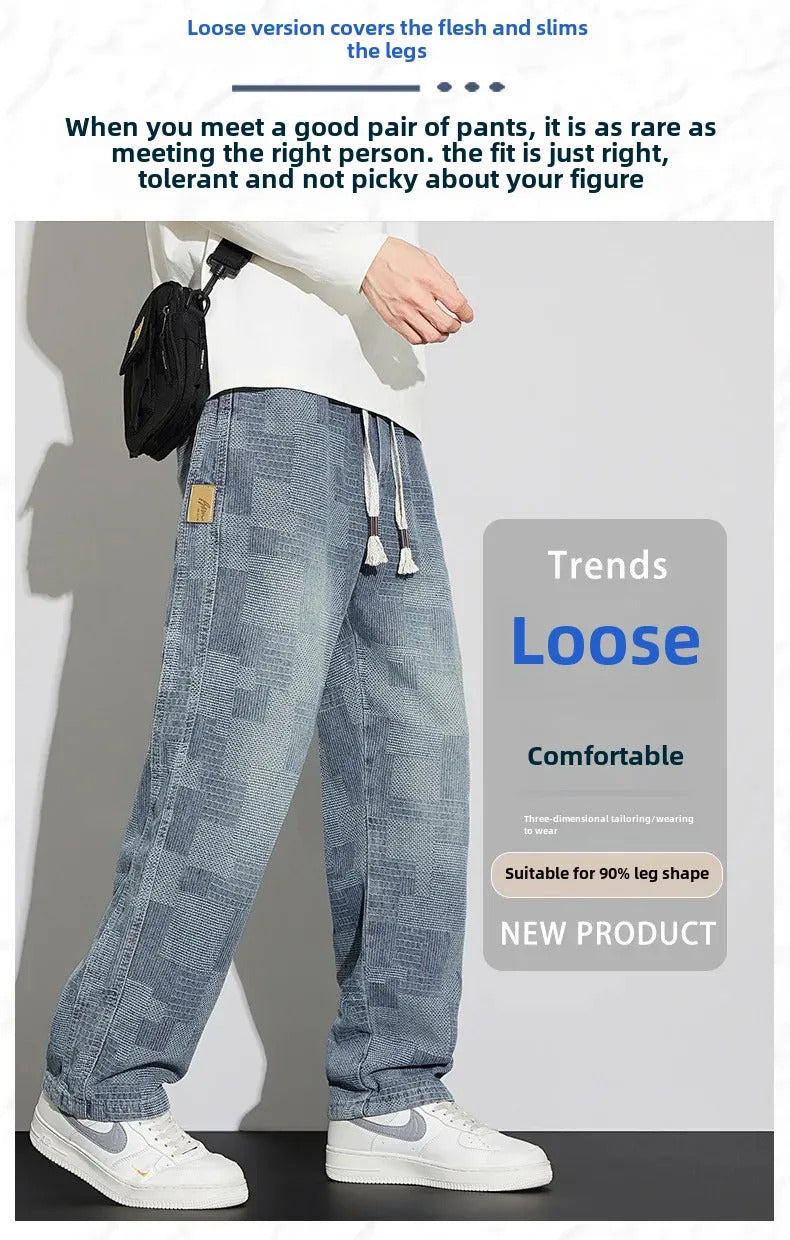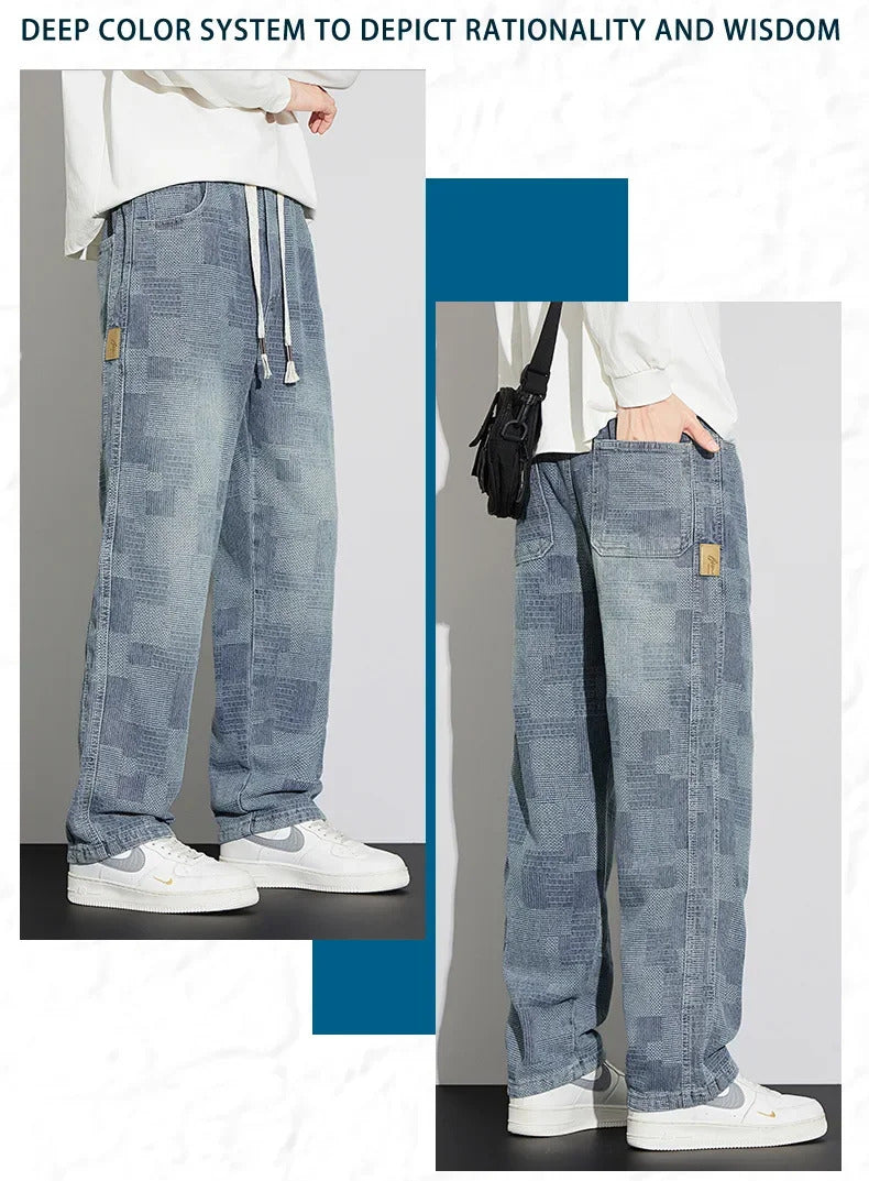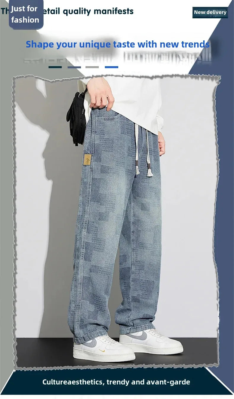牛仔裤男Trendy American Style Wide-Leg Jeans For Men New Arrival Fall/Winter European Fashion Versatile Street Casual Trousers