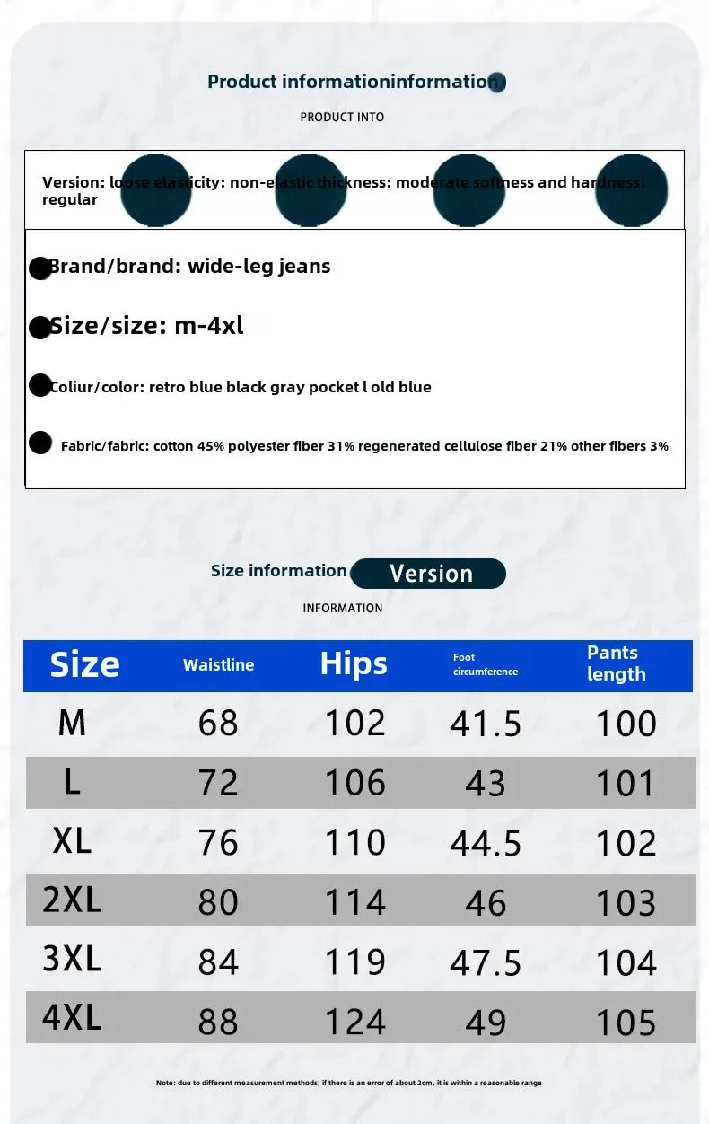 • American Style Wide Leg Jeans : Experience the comfort and style of wide leg jeans, perfect for autumn and winter wear.