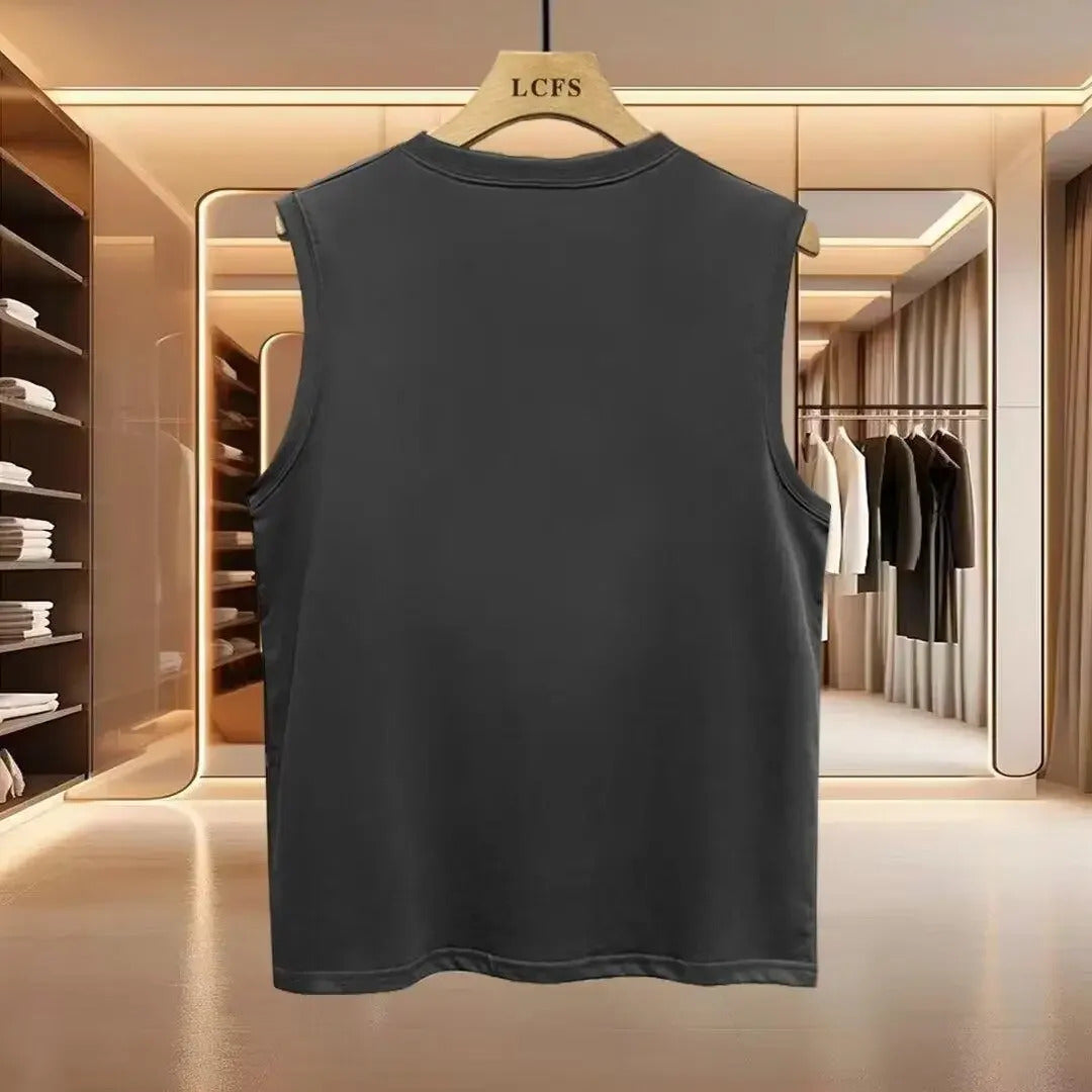 男士背心Trendy Hong Kong Style Summer Newborn Cotton T-Shirt Loose Fit Versatile Simple Streetwear Fashionable Sleeveless Top