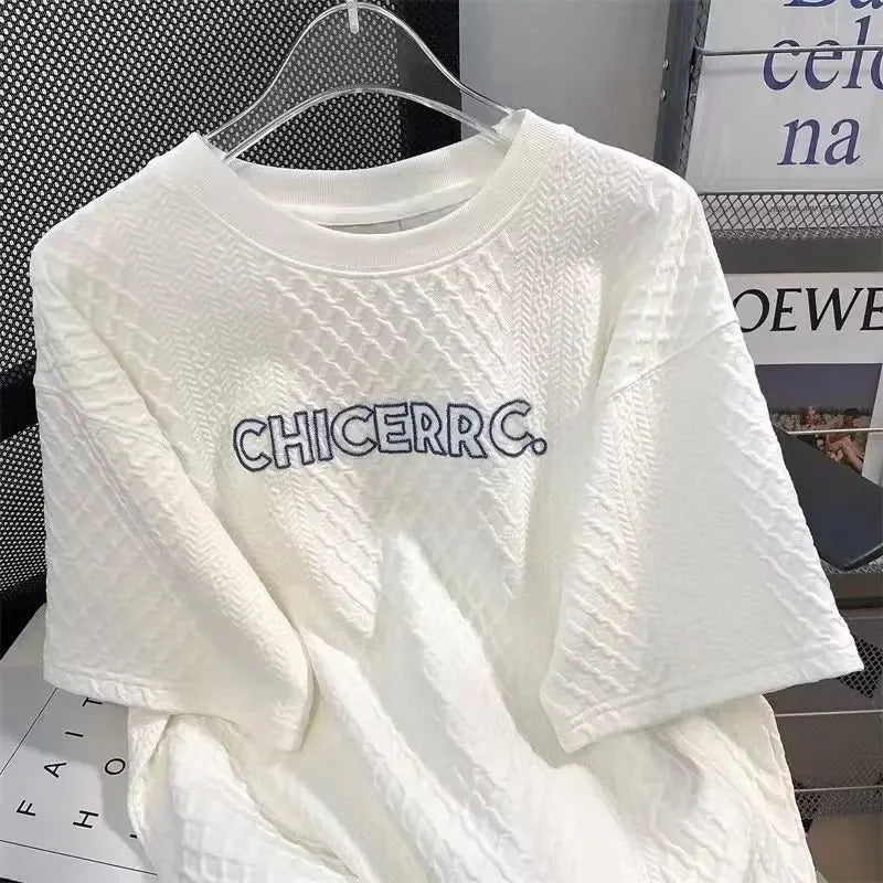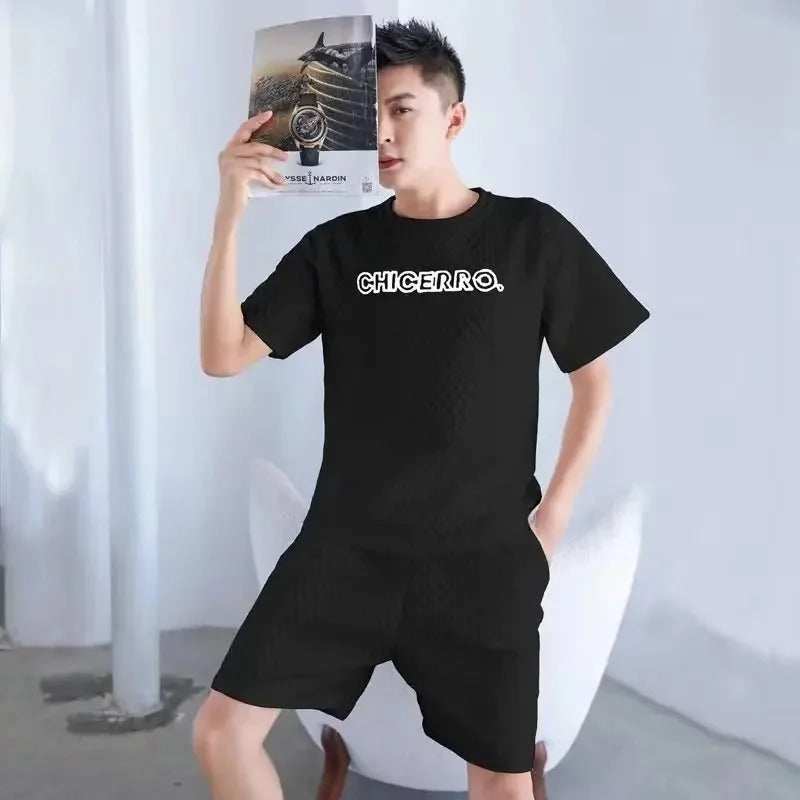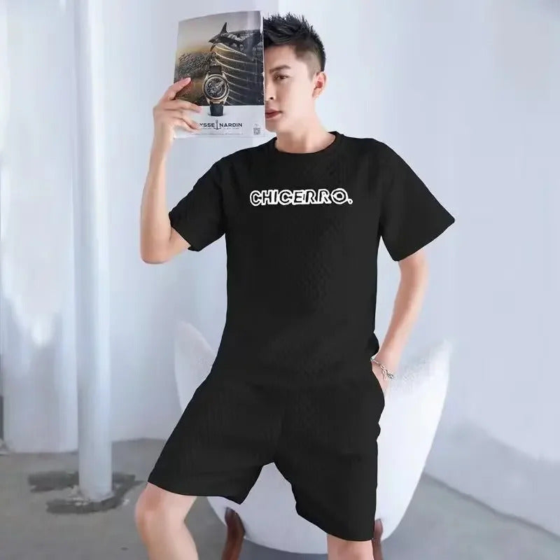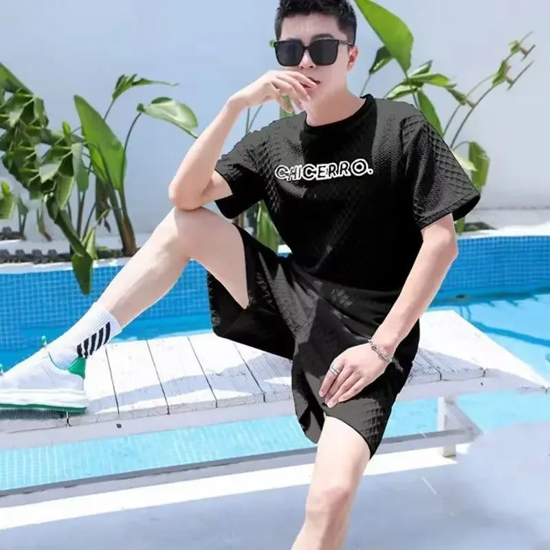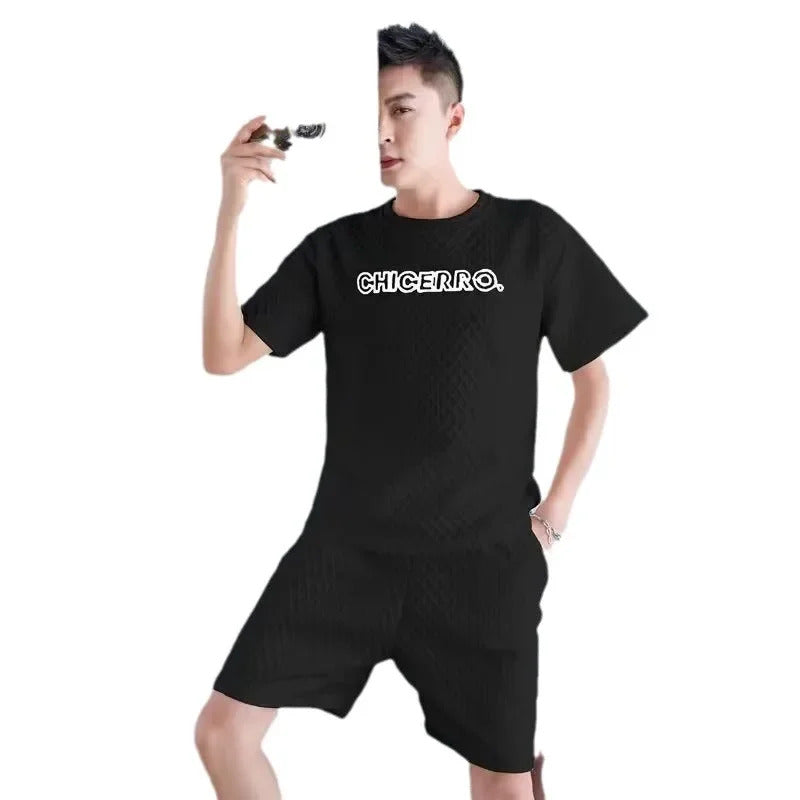 男士套装Trendy Men's Shorts Suit Cable Knit Summer Loose Fit Thin Style Cool Top Shorts Knitted Letter Printed Sleeveless Casual Wear
