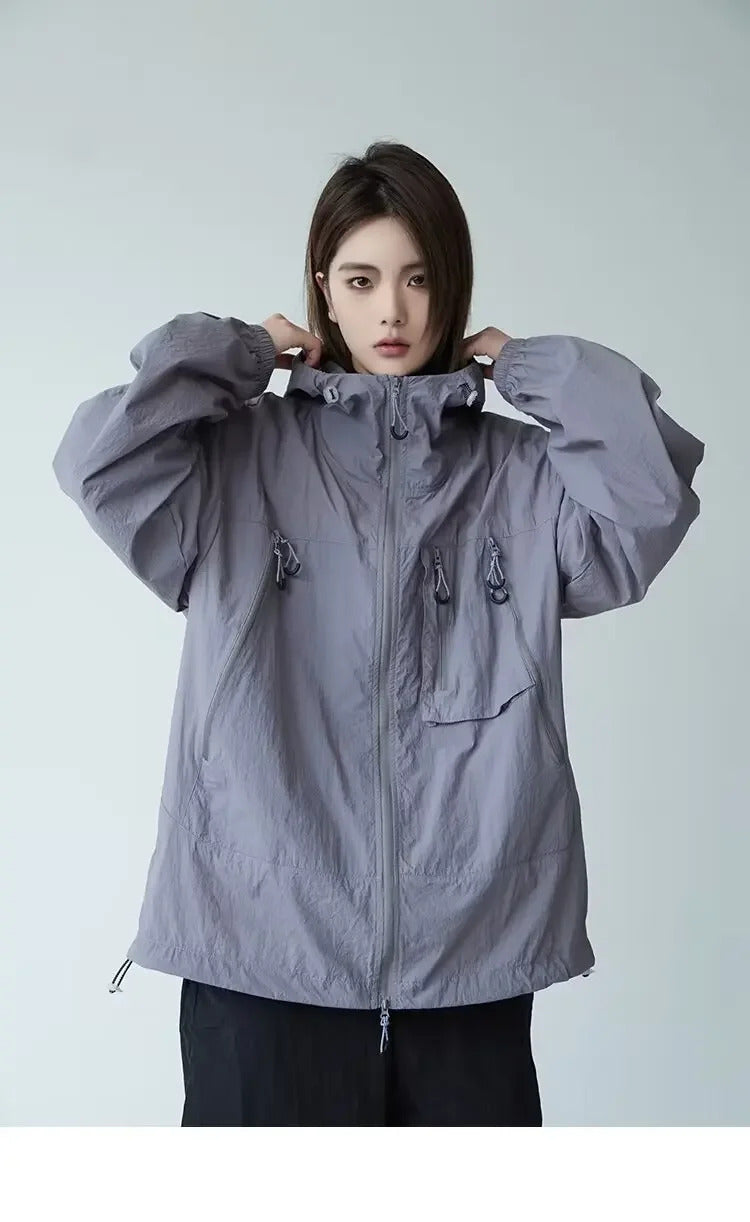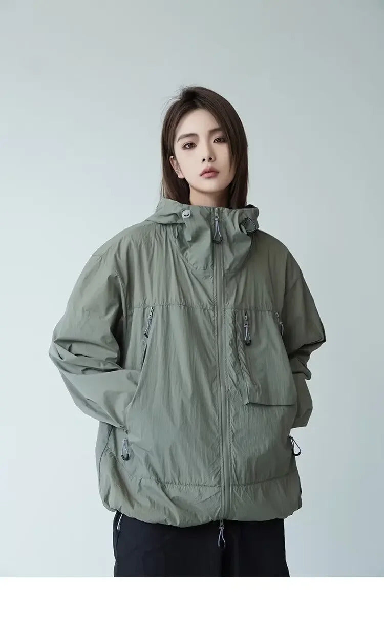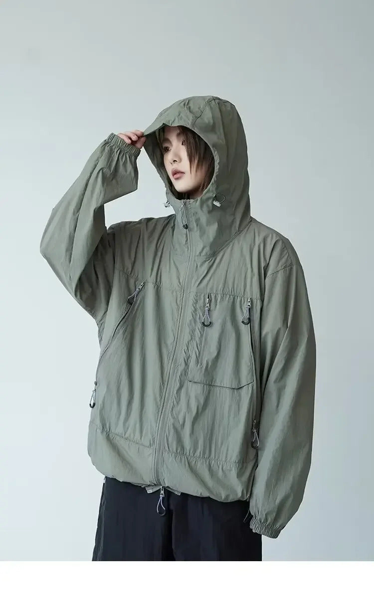 防晒衣男Trendy Vintage Thin Skin Coats For Men Women Summer Outdoor Sun Protection Couple Hooded Breathable Jackets
