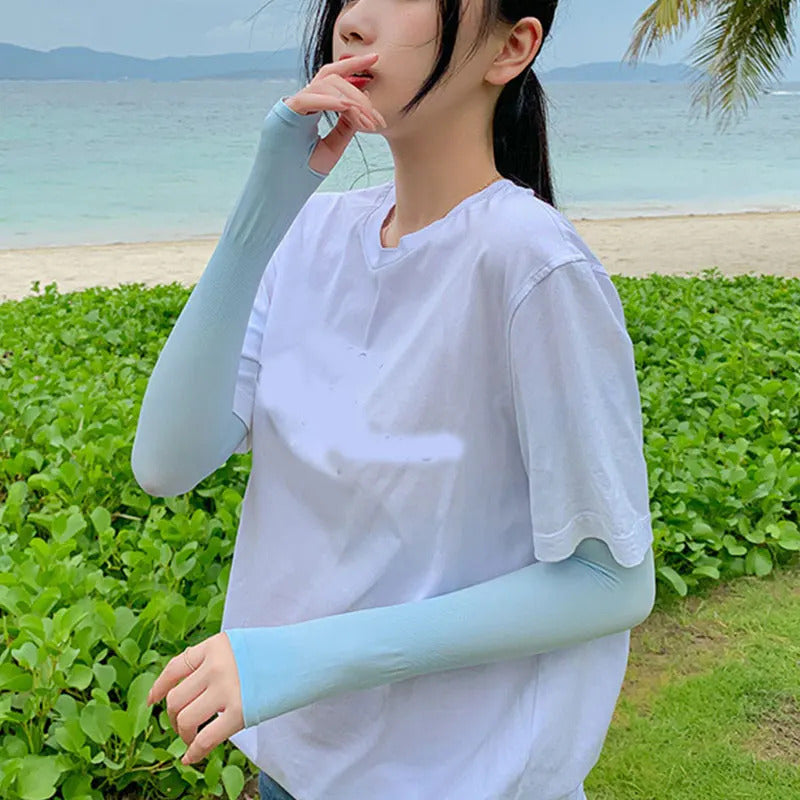 防晒冰袖女Ultra-thin Arm Sleeves For Women Spring Summer Sun Protection Ice Sleeve Elastic Long Hand Cover Cycling Sports Arm Sleeve