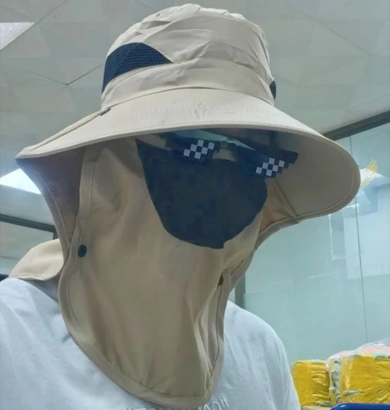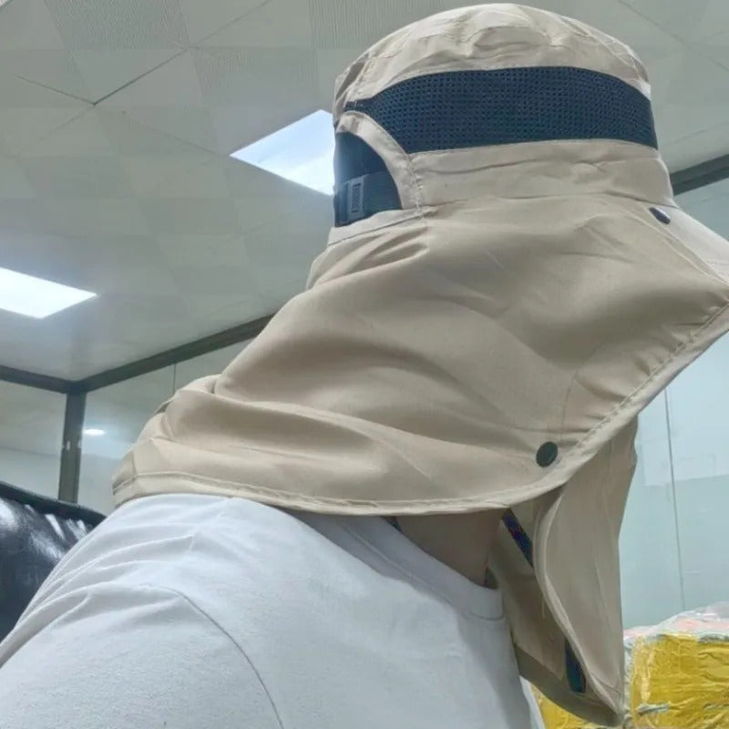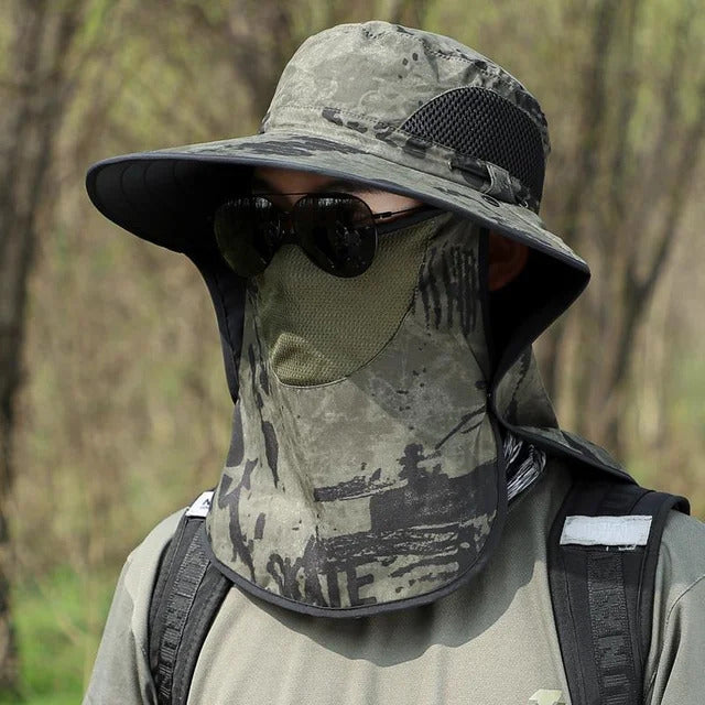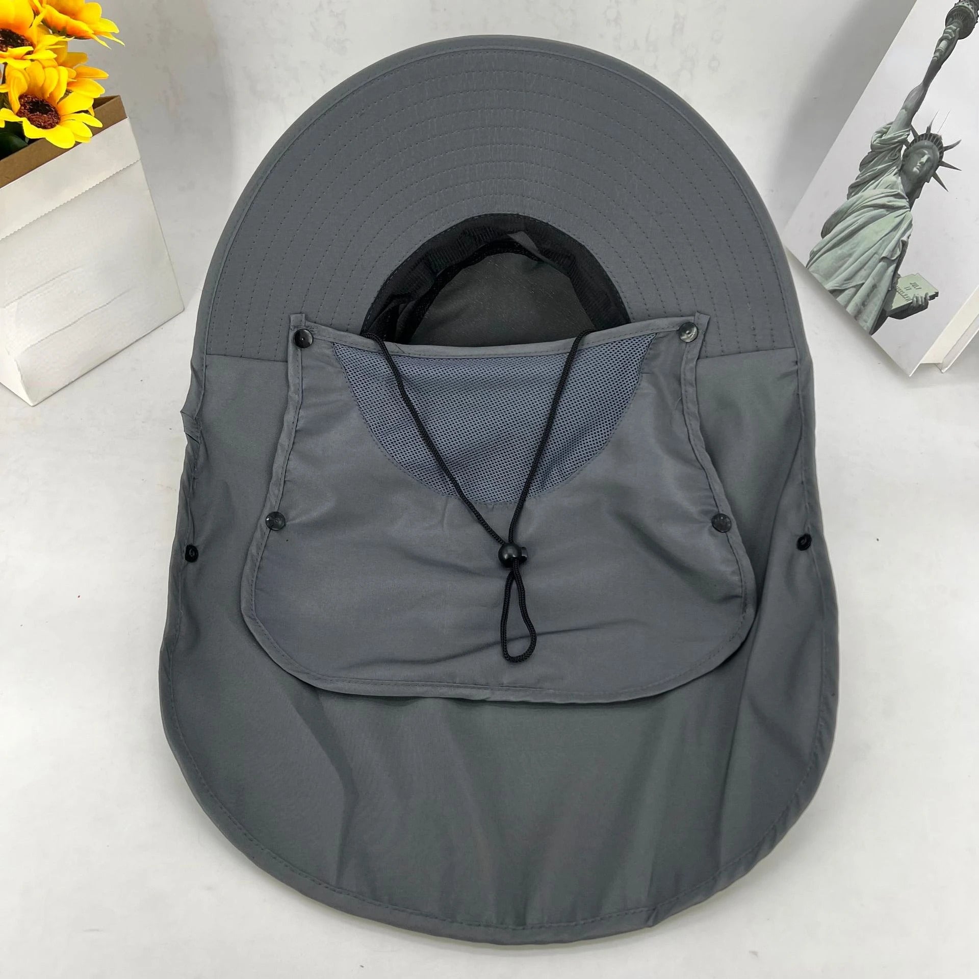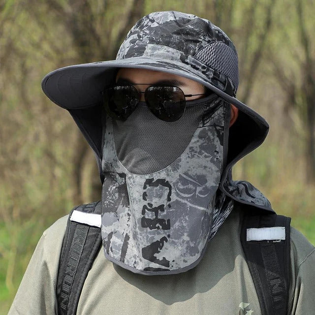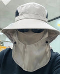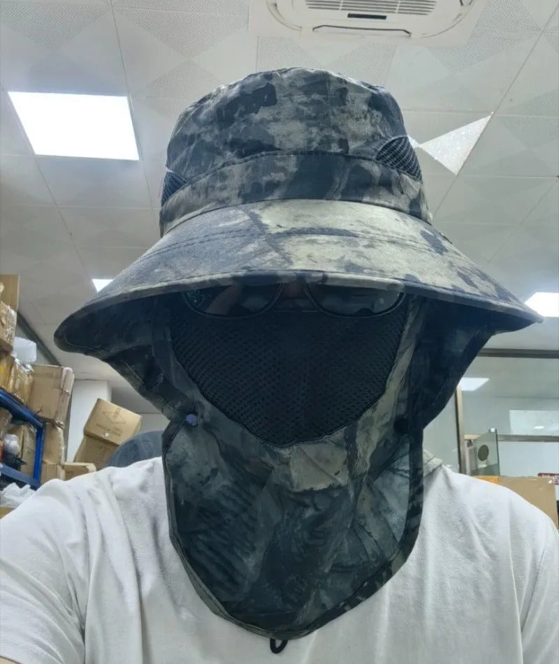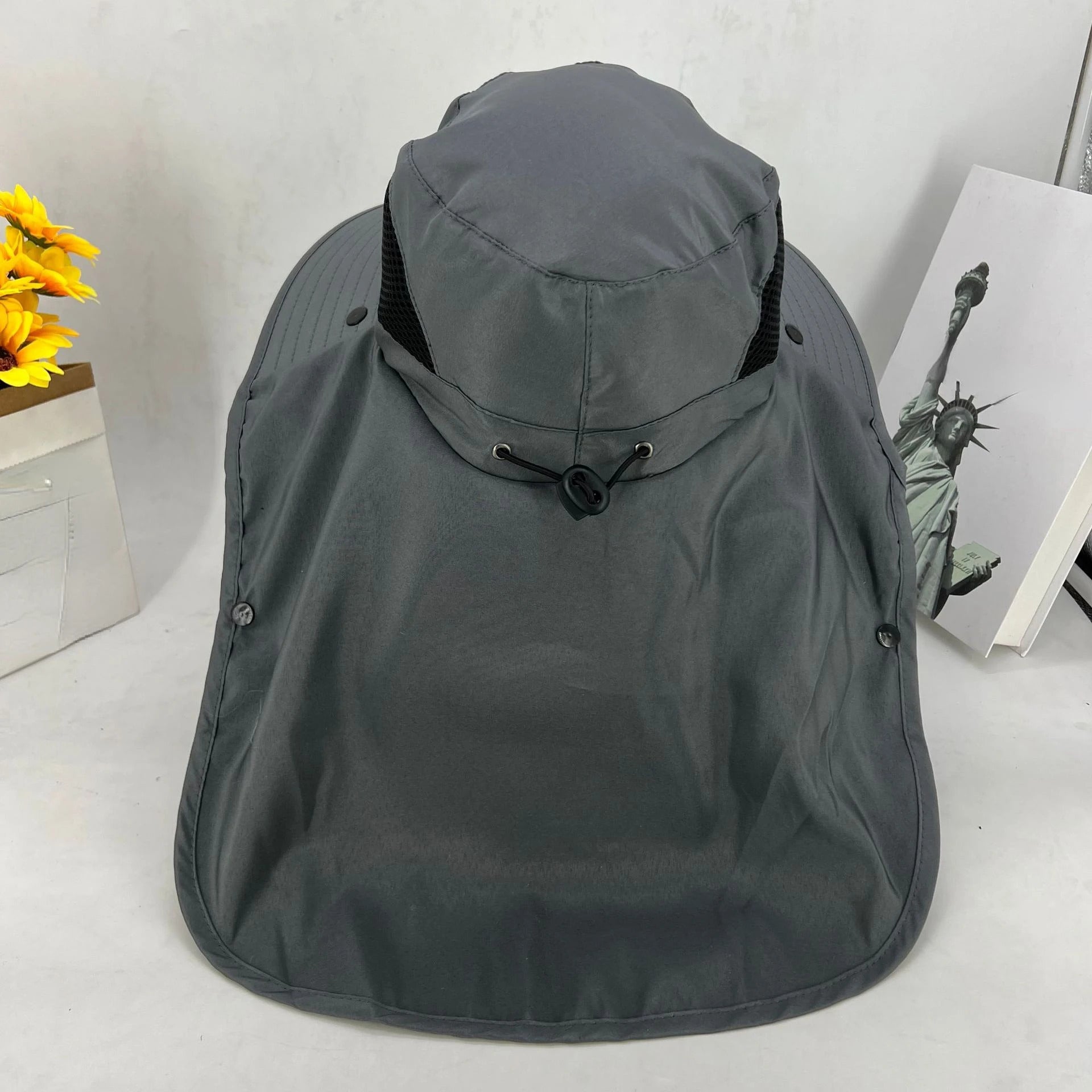 防晒帽男UPF50+ Fishing hat Sun shading large eaves mountain climbing mask mesh breathable outdoor UV protection detachable full face