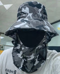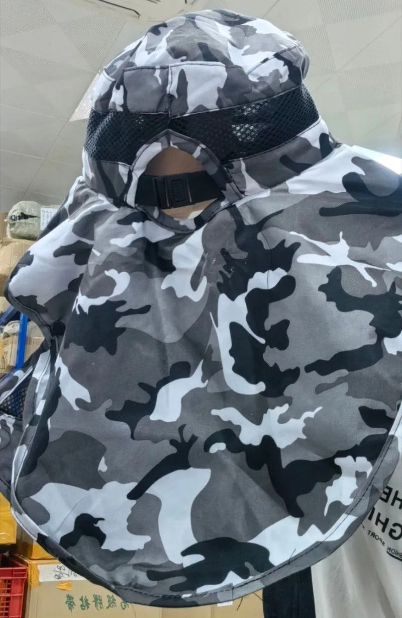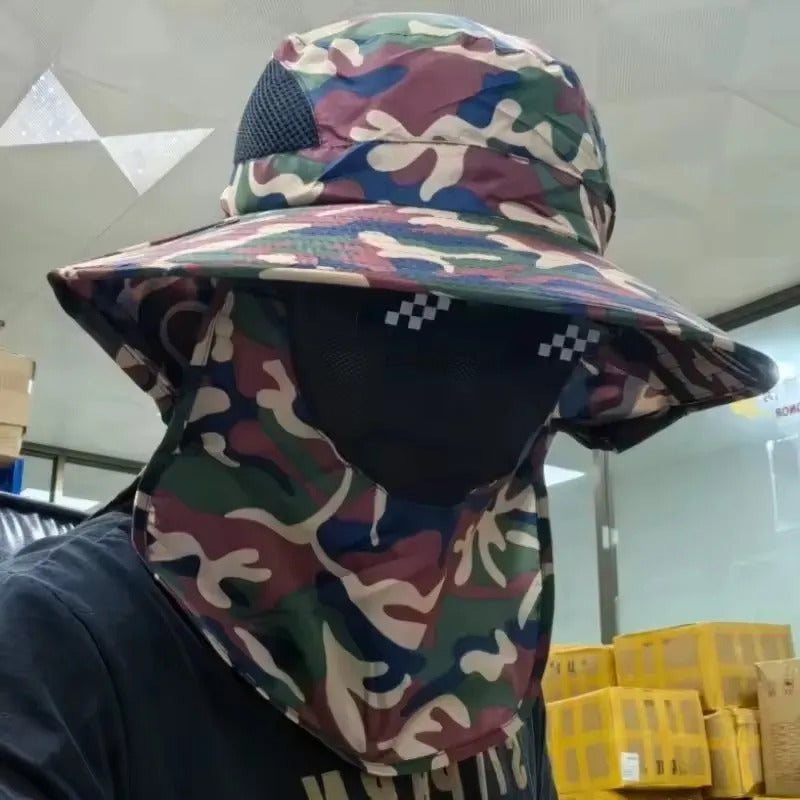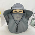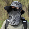 UPF50+ Fishing hat Sun shading large eaves mountain climbing mask mesh breathable outdoor UV protection detachable full face