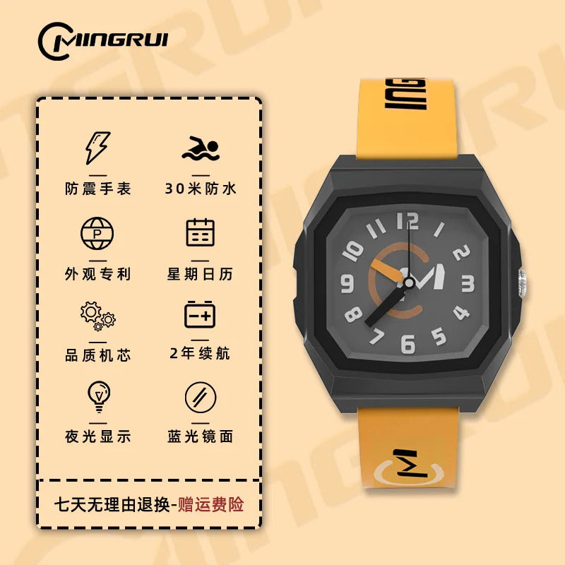 手表女UTHAI CA01 Men's Electronic Watch Brand High Quality Silicone Women's Fashion Square Waterproof Clock Student Simple Watches