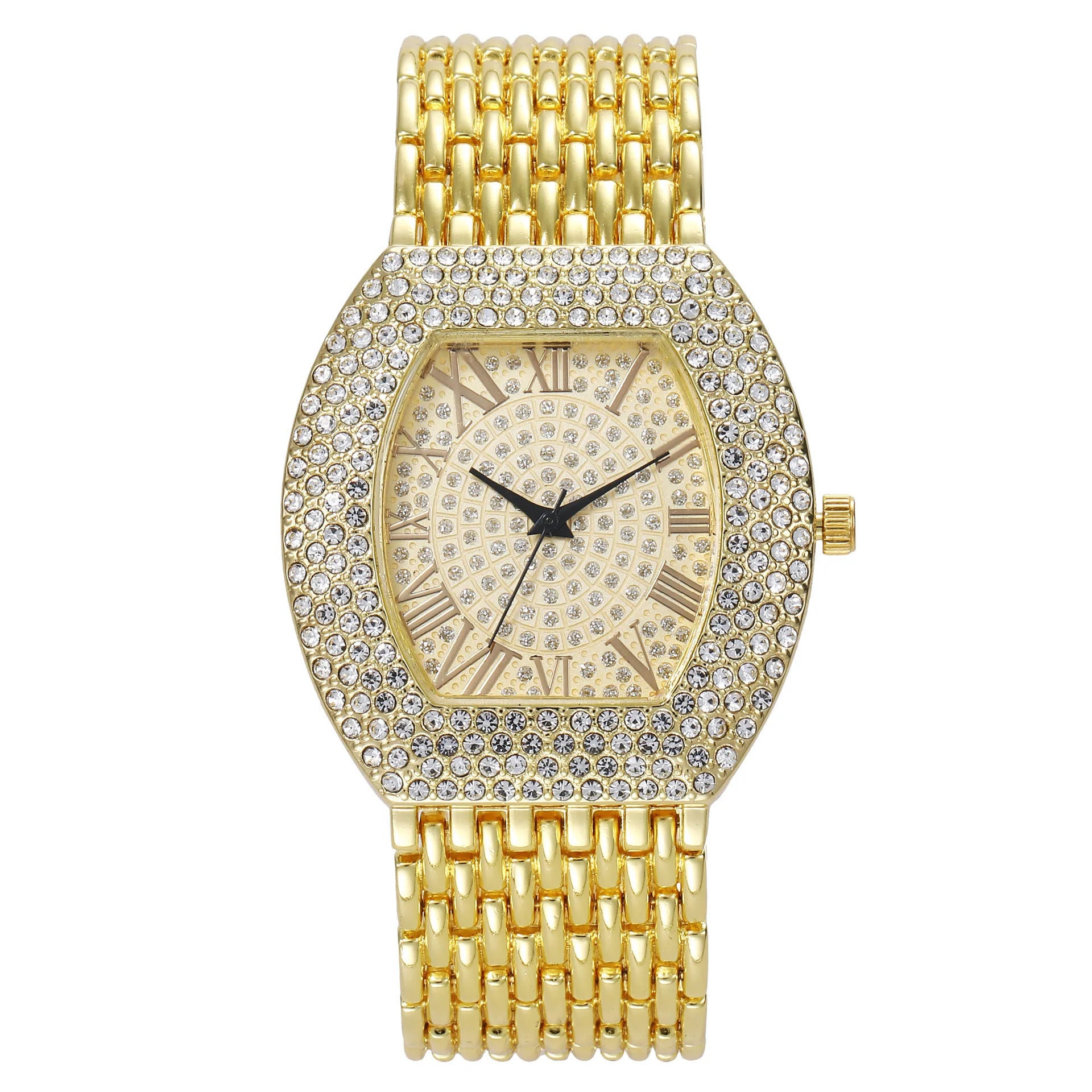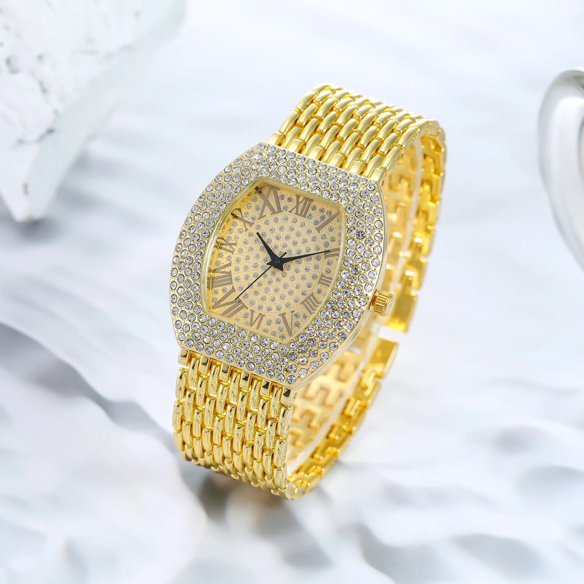 手表女UTHAI H64 Women's Full Diamond Watch Temperament Gold Steel Band Barrel shaped Full Sky Star Vintage Fashion Quartz Wristwatches