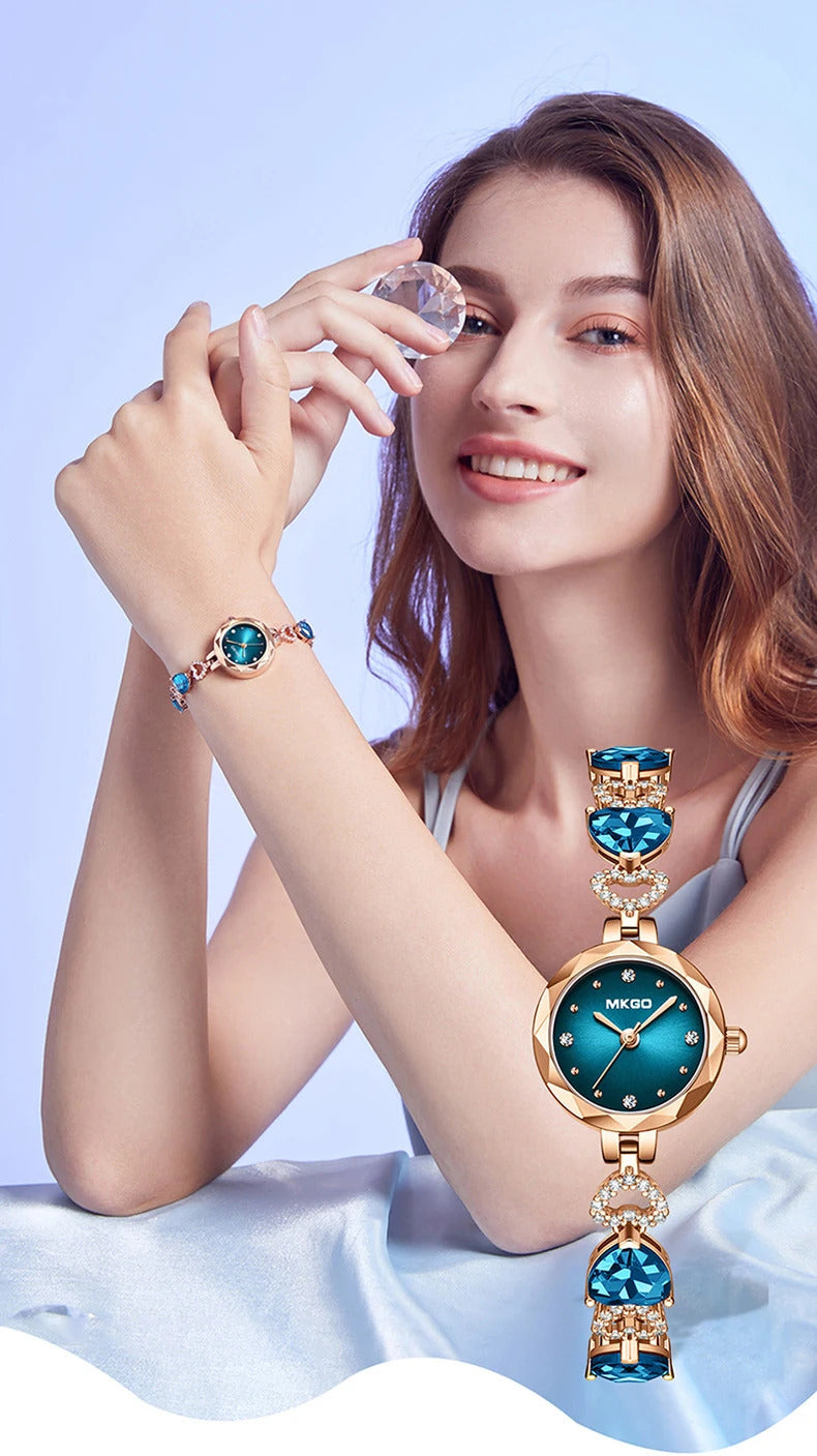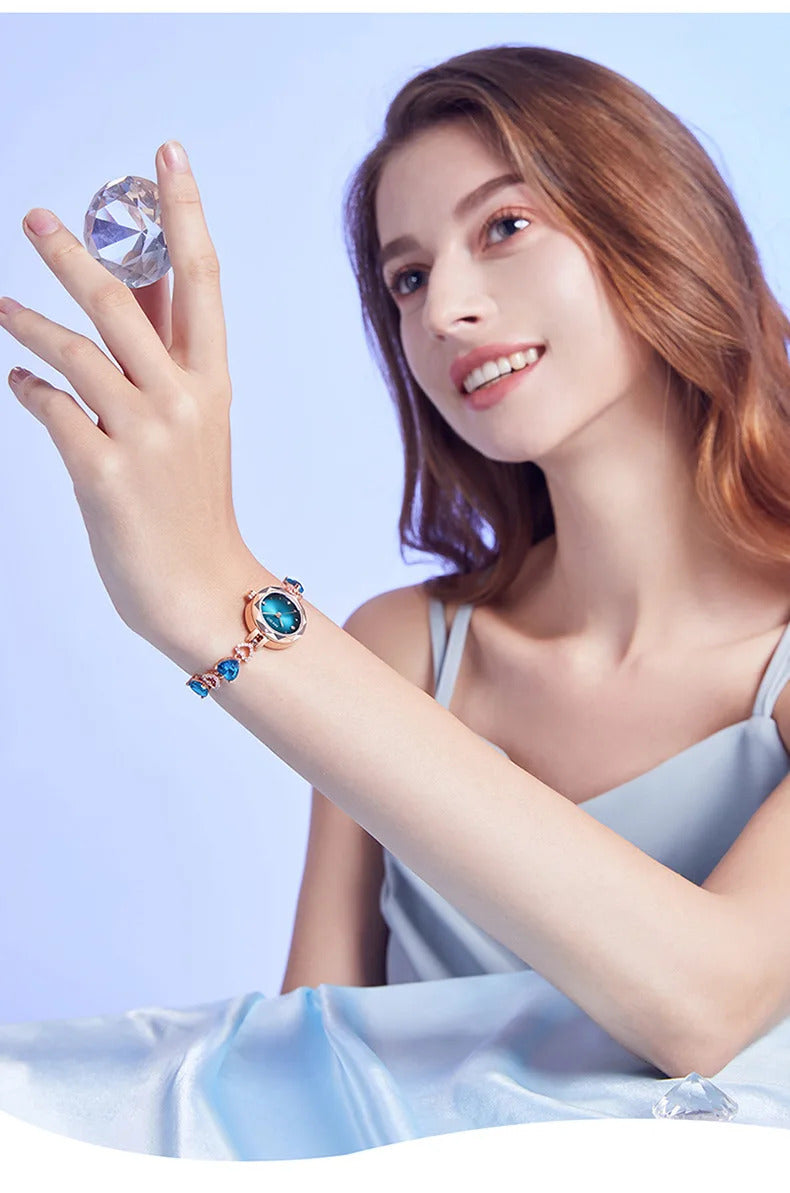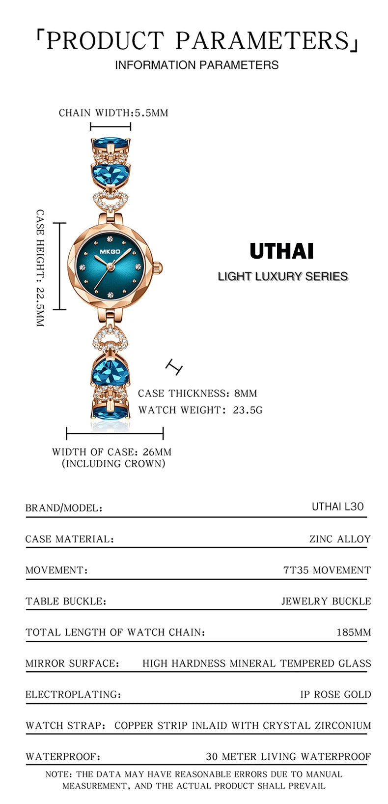 手表女UTHAI L36 Women's Fashion Quartz Watch Light Luxury Diamond Chain Waterproof Premium Blue Crystal Bracelet Female's Watches Gift