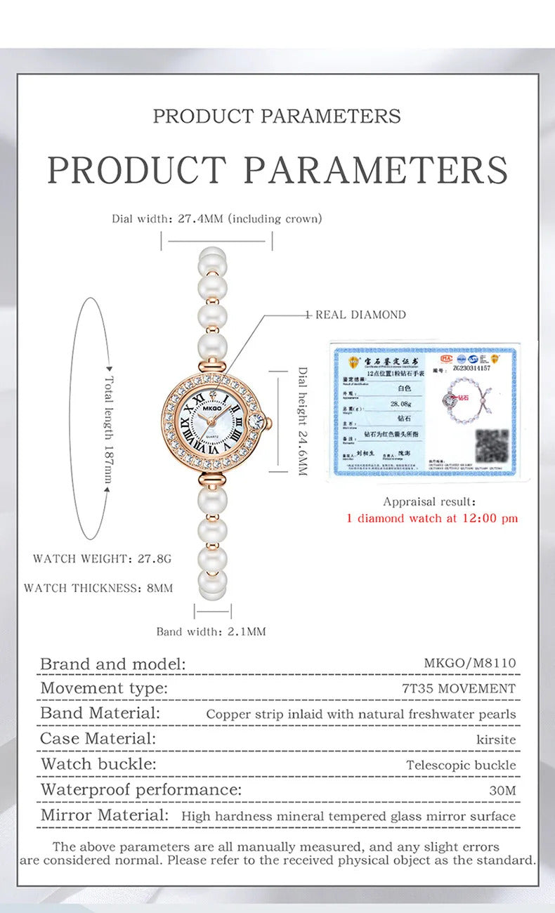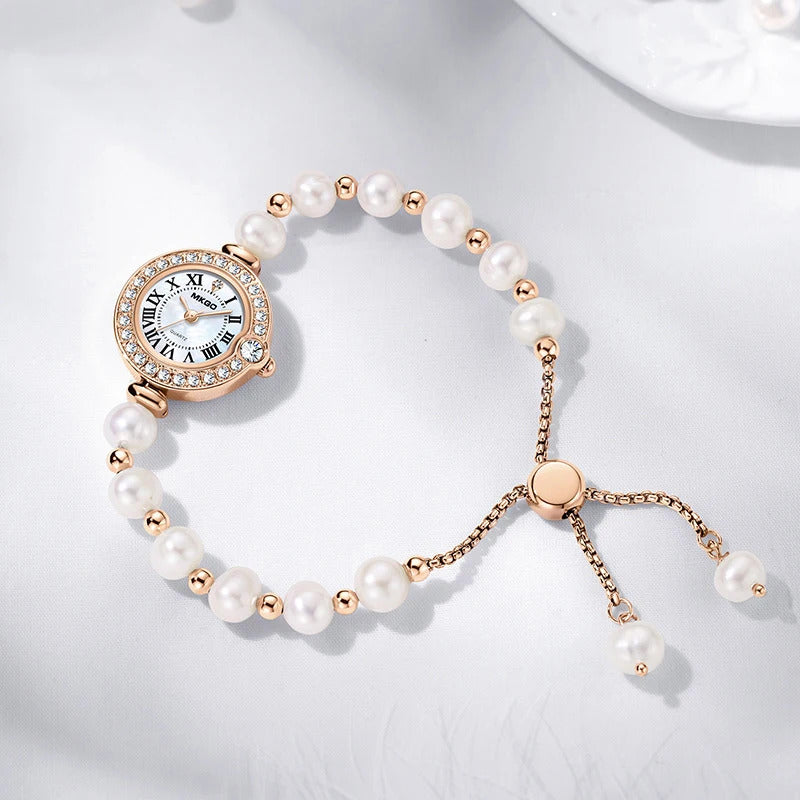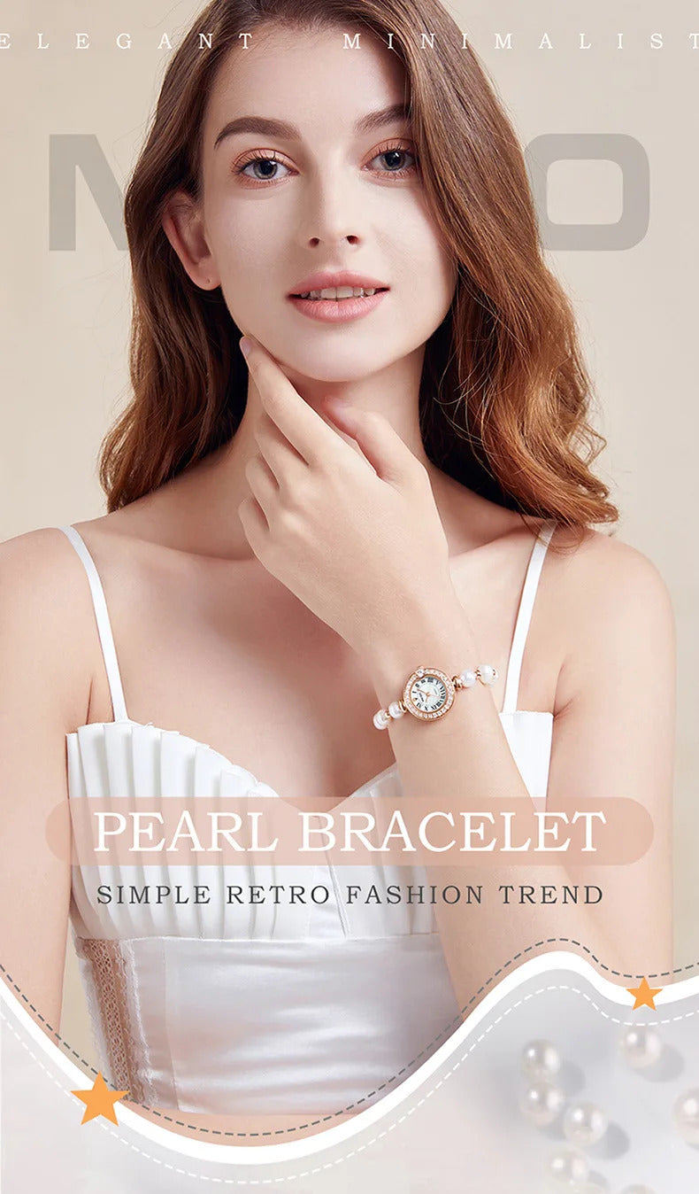 手表女UTHAI L52 Women's Fashion Watch Light Luxury Diamond Freshwater Pearl Bracelet Waterproof Roman Pattern Clock Female's Watches