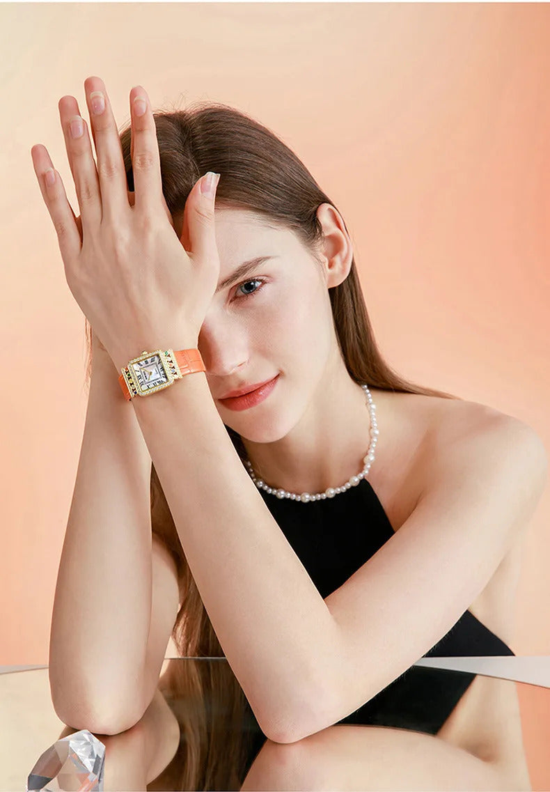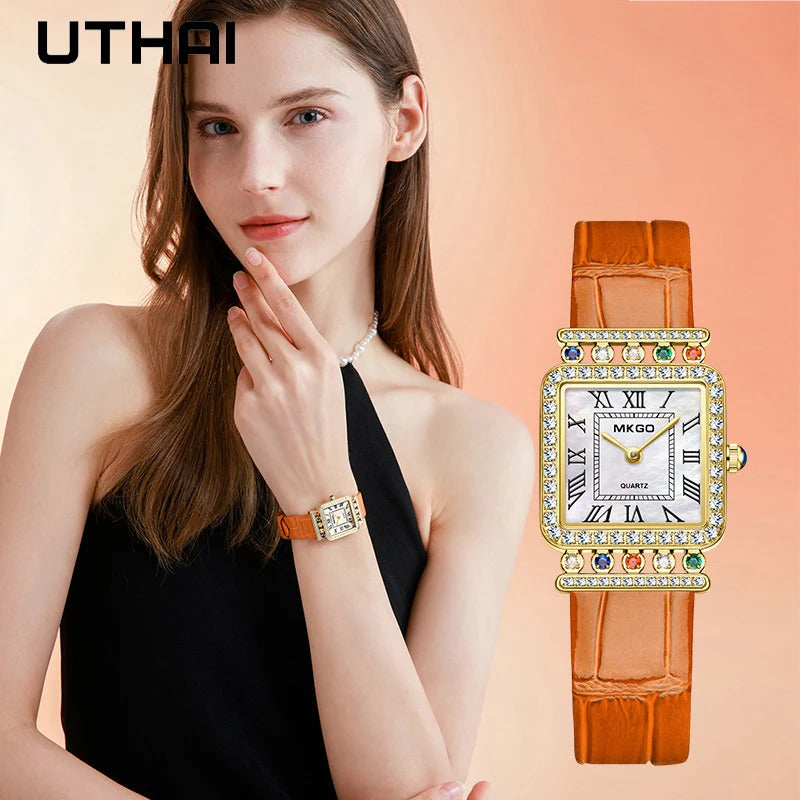 手表女UTHAI L85 Women's Watches Light Luxury Crystal Fritillaria Square Roman Scale Waterproof Jewelry Diamond Female's Bracelet Watch
