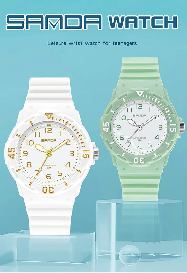 手表女UTHAI Student Watch Fashion Trend Outdoor Sports Fresh 50M Waterproof PU Soft Female Middle School Student Youth Clock Watches