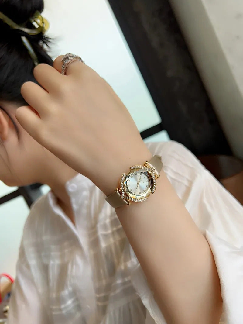 手表女UTHAI Women Watch Light Luxury Brand Diamond Female Wristwatch Bracelet Leather Strap Waterproof Ladies Fashion Quartz Watches