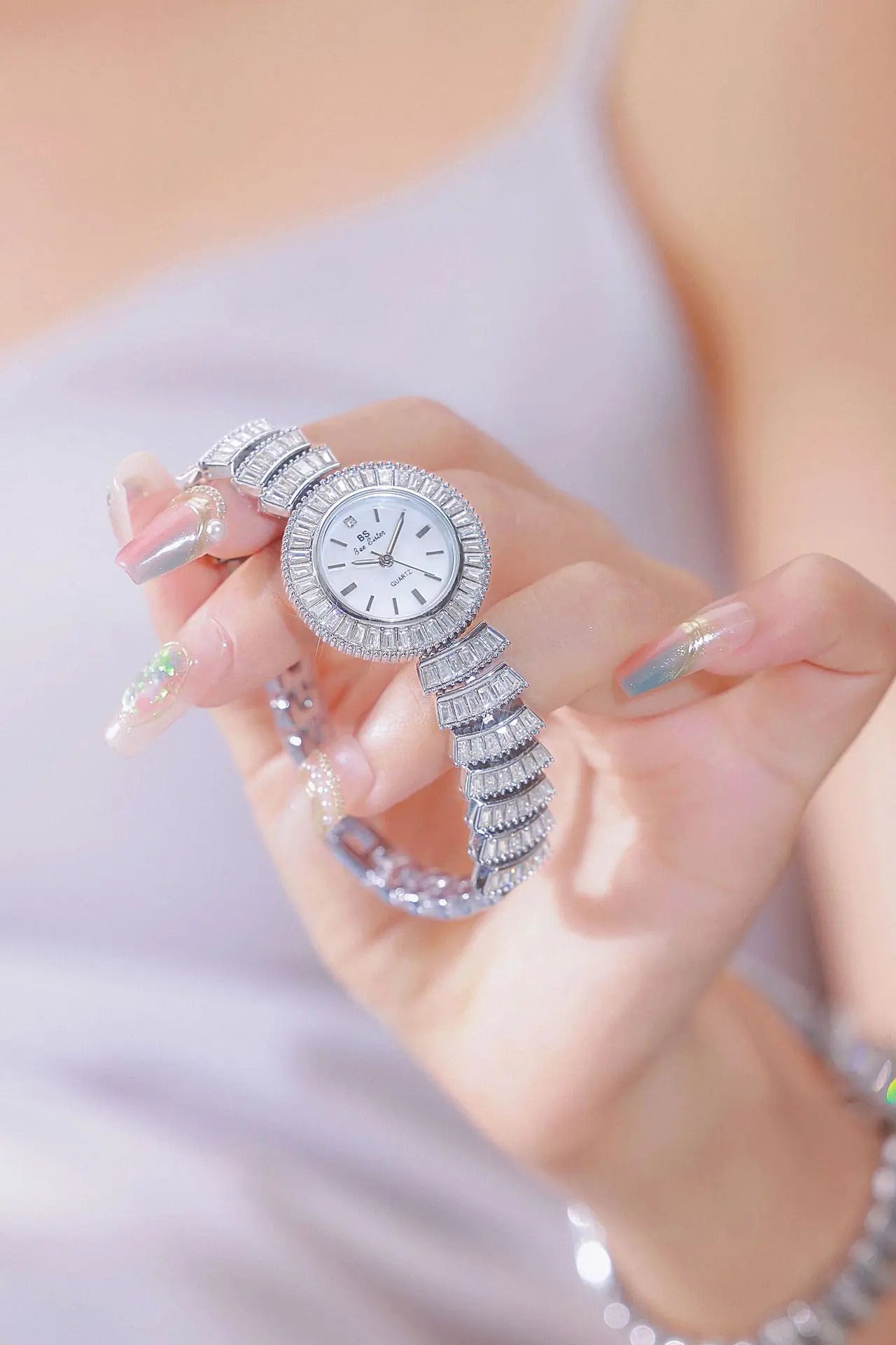 手表女UTHAI Women Watch Light Luxury Brand Female Bracelet Exquisite Mermaid Full Diamond Waterproof Ladies Fashion Quartz Clock Watch