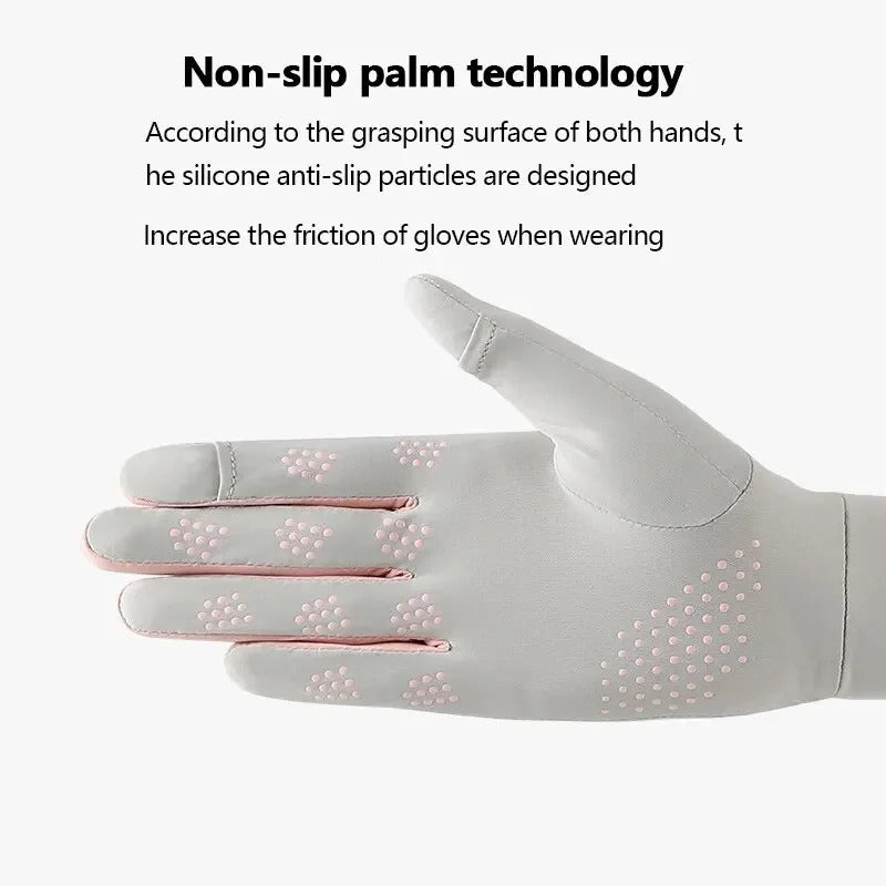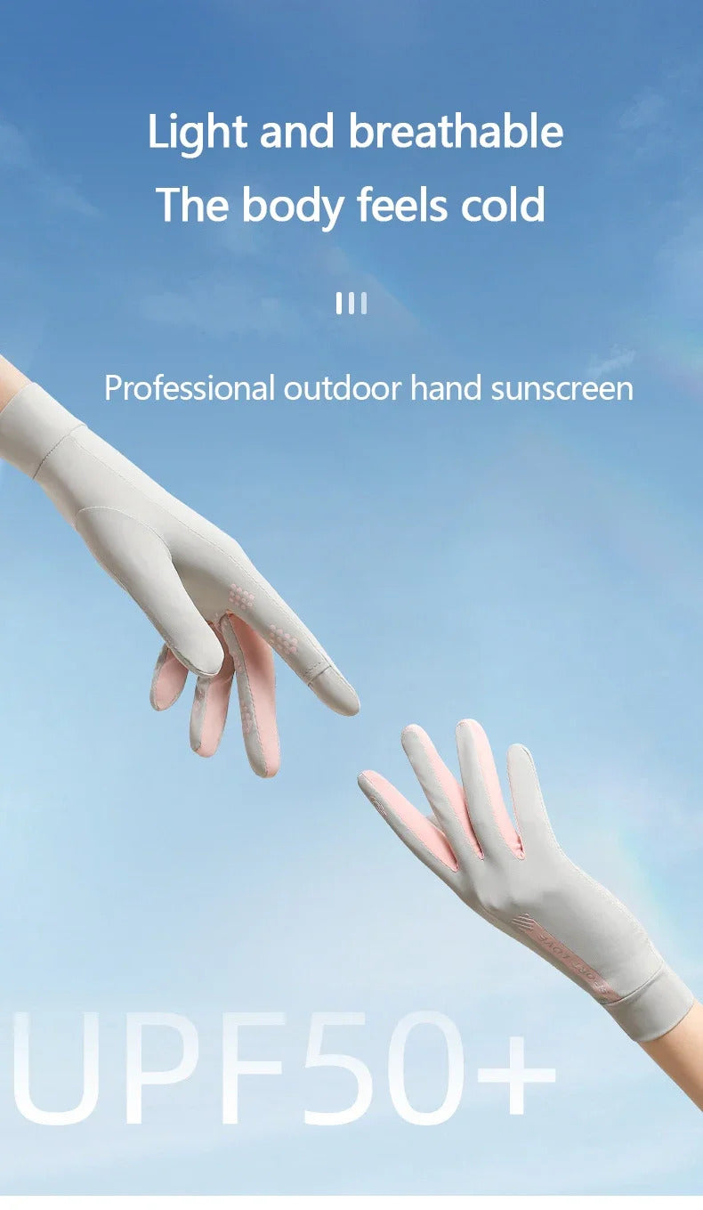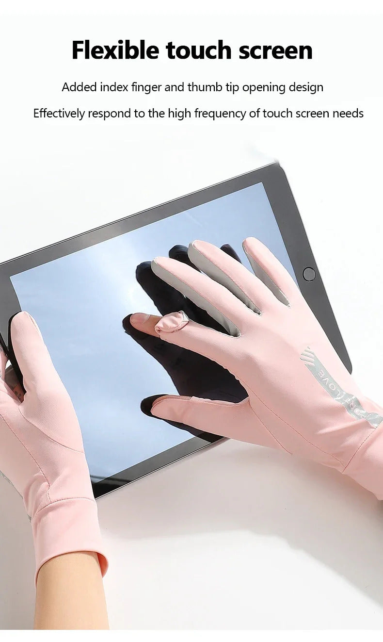 防晒手套女UV protection Ice Silk Cool Sunscreen Glove For Women Outdoor Sports Cycling Uv Anti-Slip Breathable Thin Elastic Matching Color