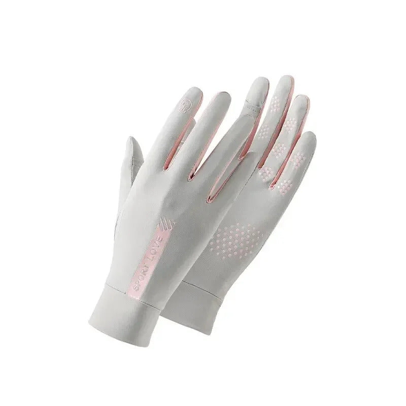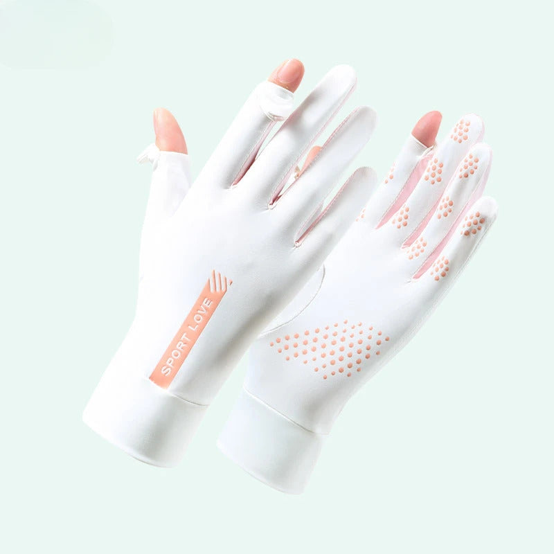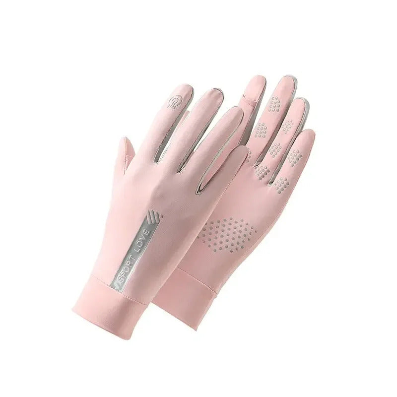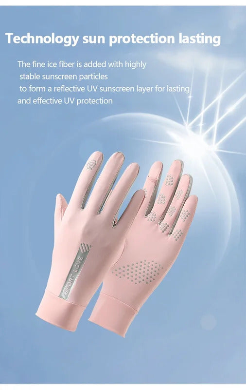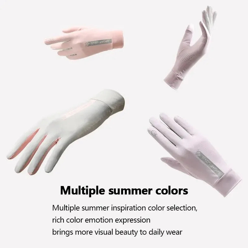 Ice silk cool sunscreen gloves for women outdoor sports cycling UV anti-slip breathable thin elastic matching color