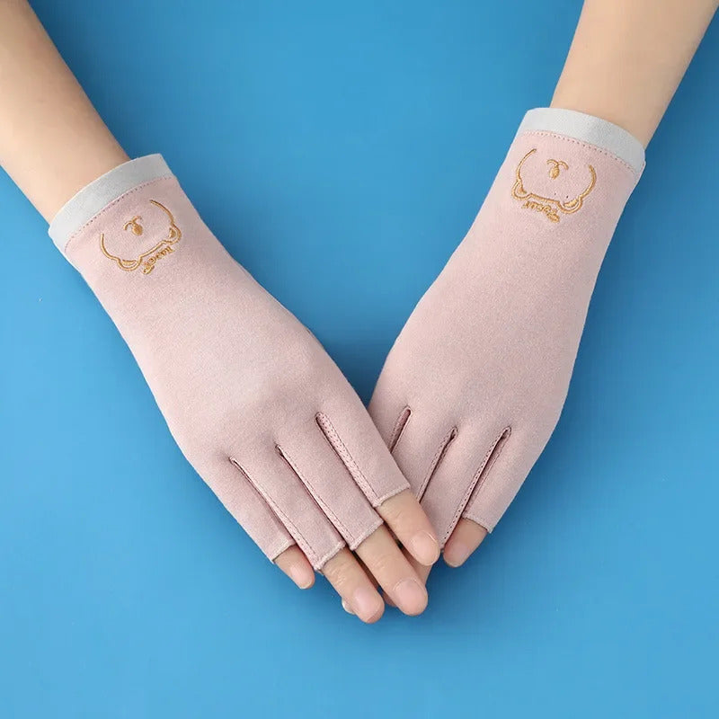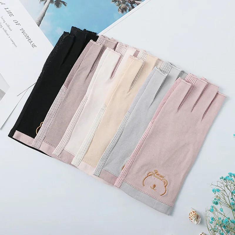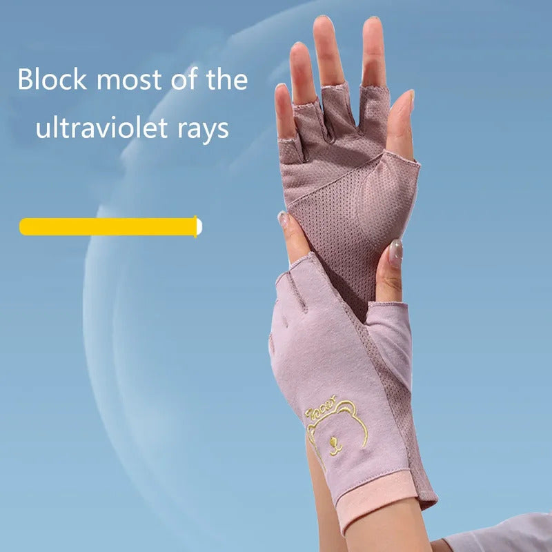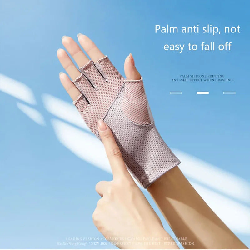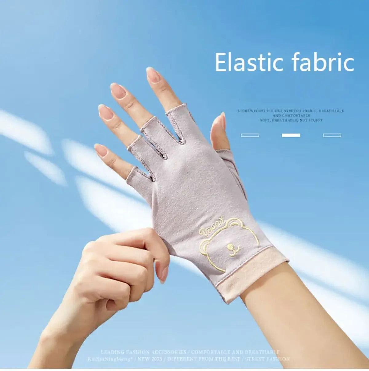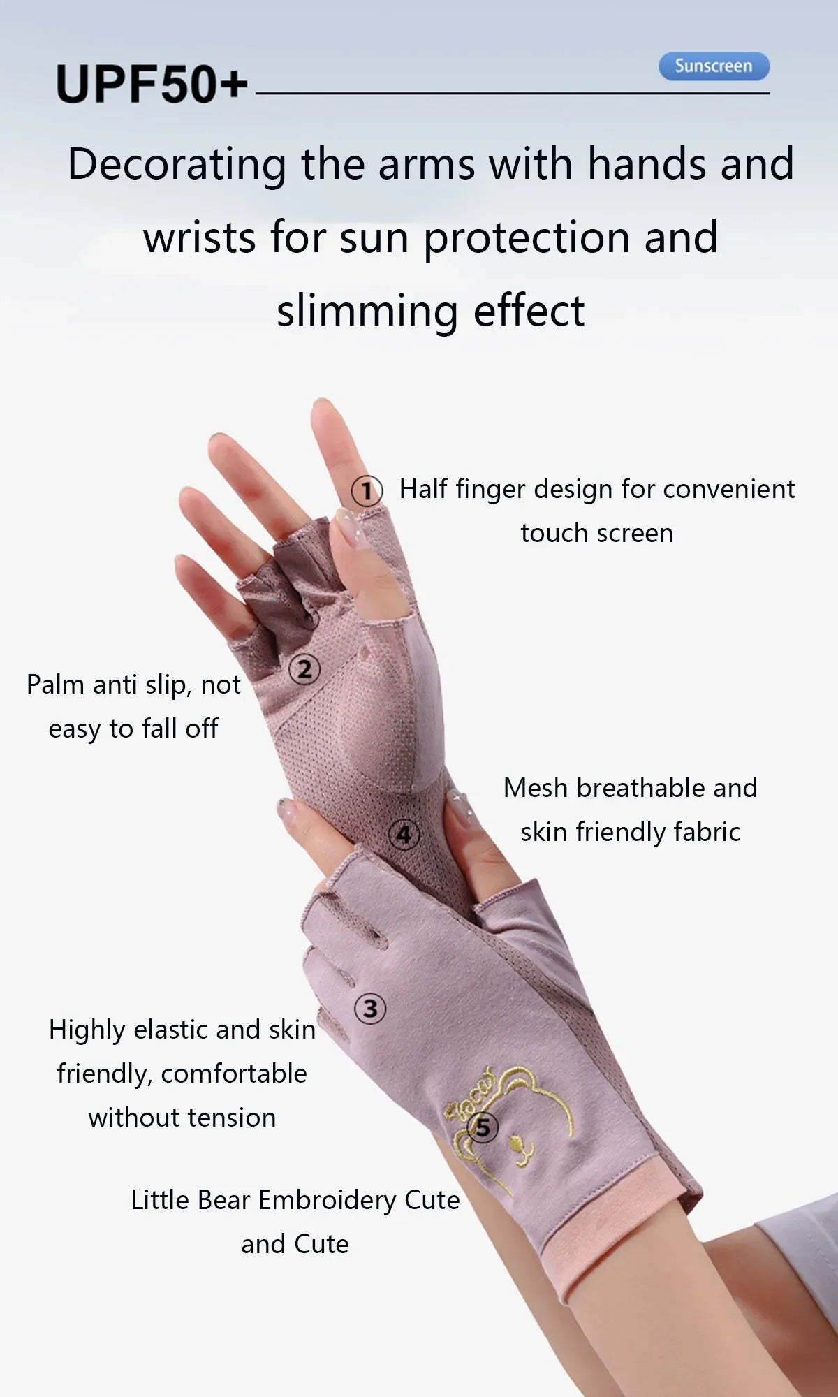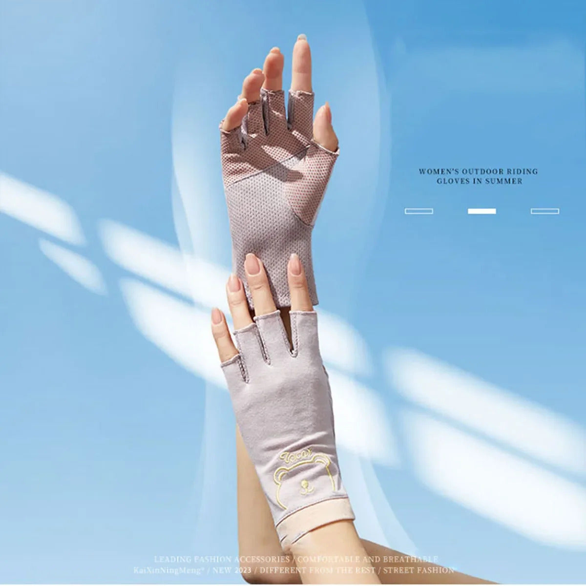 防晒手套女UV Protection Summer Thin Half Finger Sunscreen Gloves Non Slip Breathable and UV Resistant Manicure Gloves for Cycling Outdoor