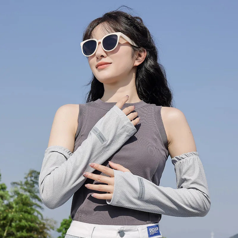 防晒冰袖女UV Solar Arm Sleeves Men Cycling Mask Long Sleeve Ice Silk Driving Arm Cover Sun-protective Summer Women Anti-Sunburn Cool Muff