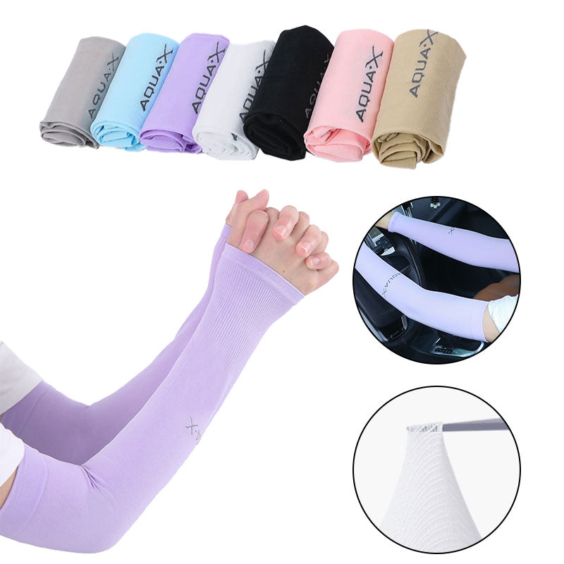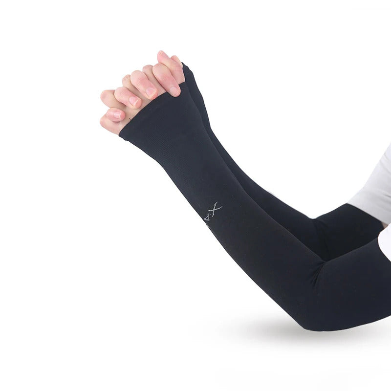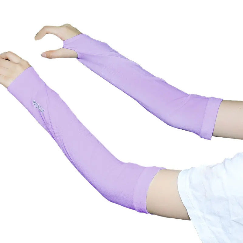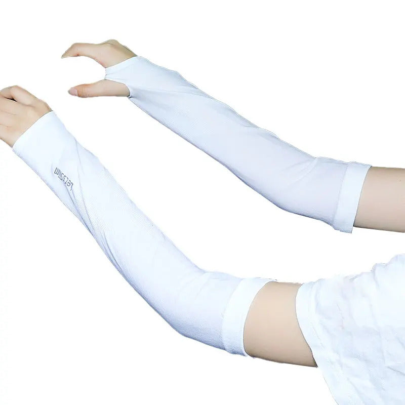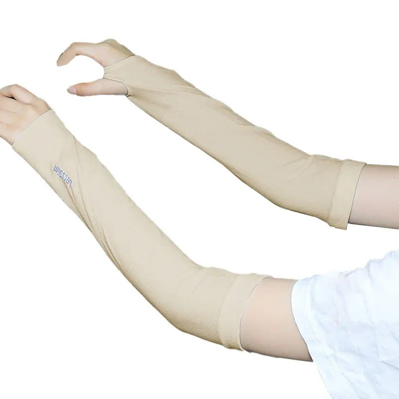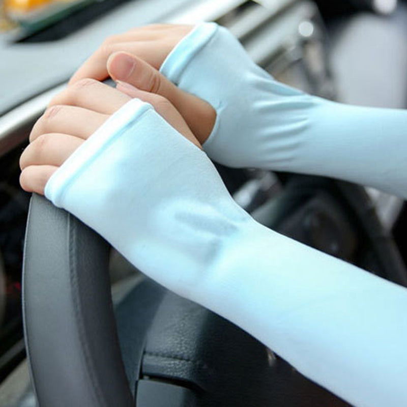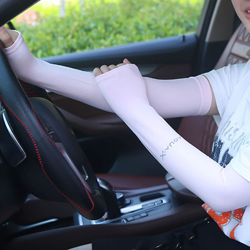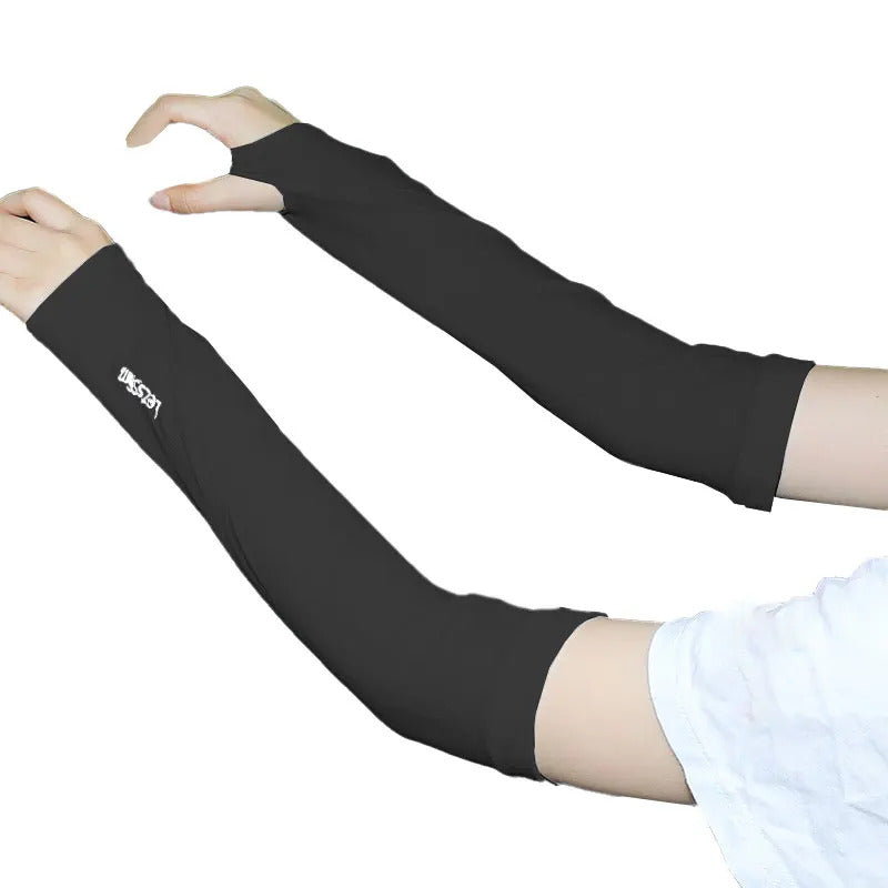 防晒冰袖女Uv Solar Arm Sleeves Woman Men Cycling Fingerless Gloves Cool Muff Summer Ice Silk Elastic Arm Cover Driving Anti-Sunburn Sleeve