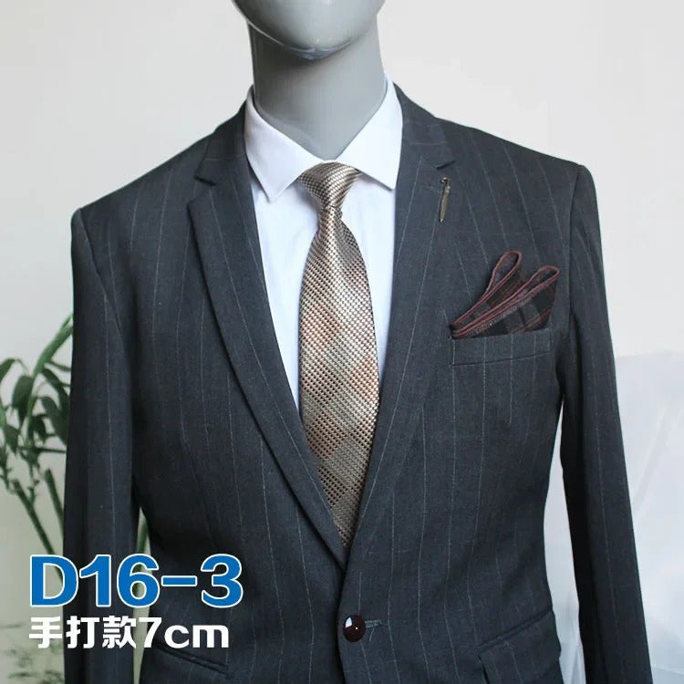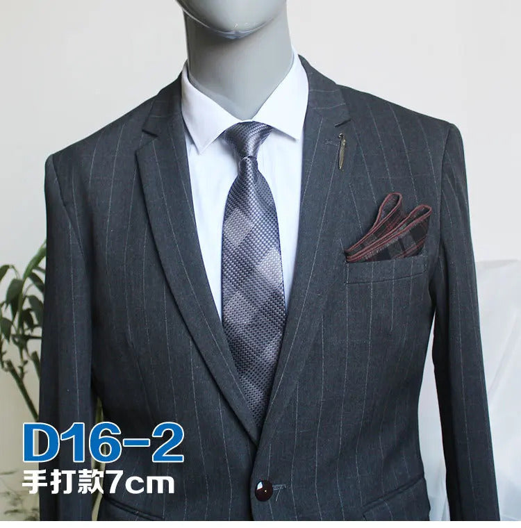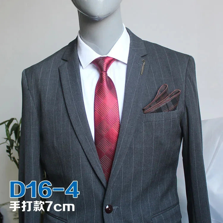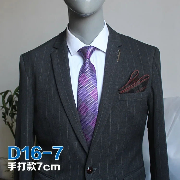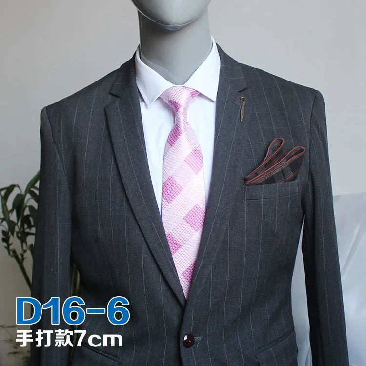 领带男Versatile Men's 7CM Ties Pink Wine Plaid Jacquard Tie Fit Gentleman Formal Business Suit Decoration Neckties Graduation Gift