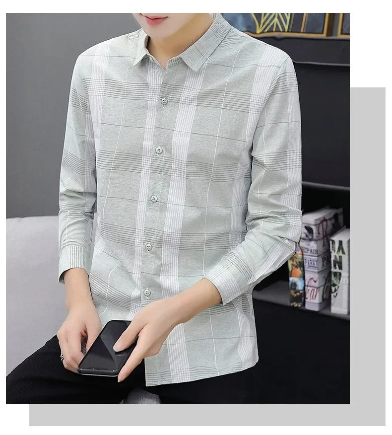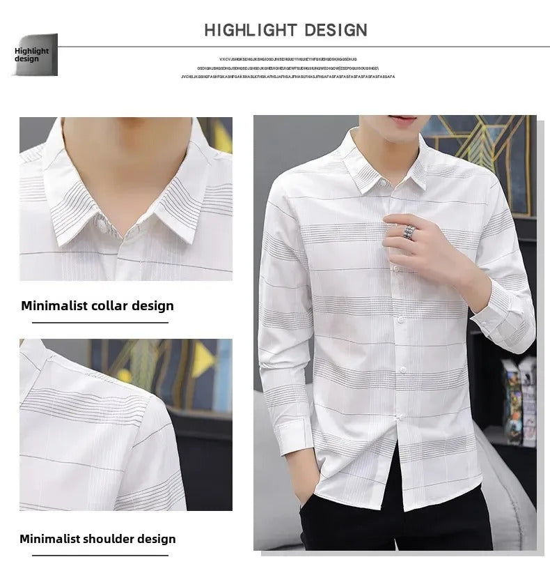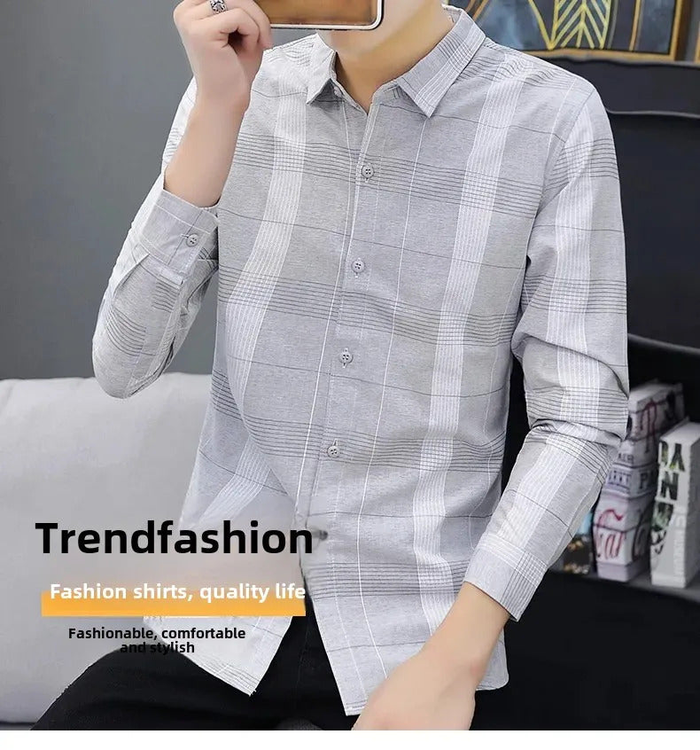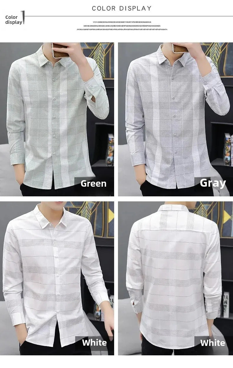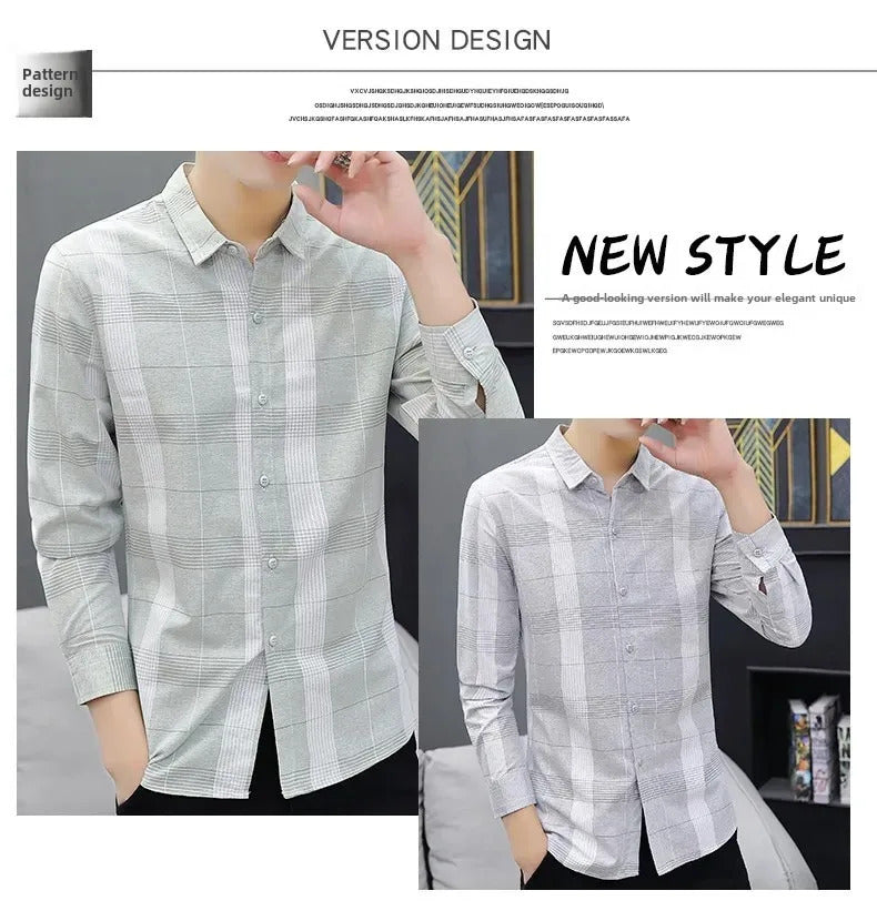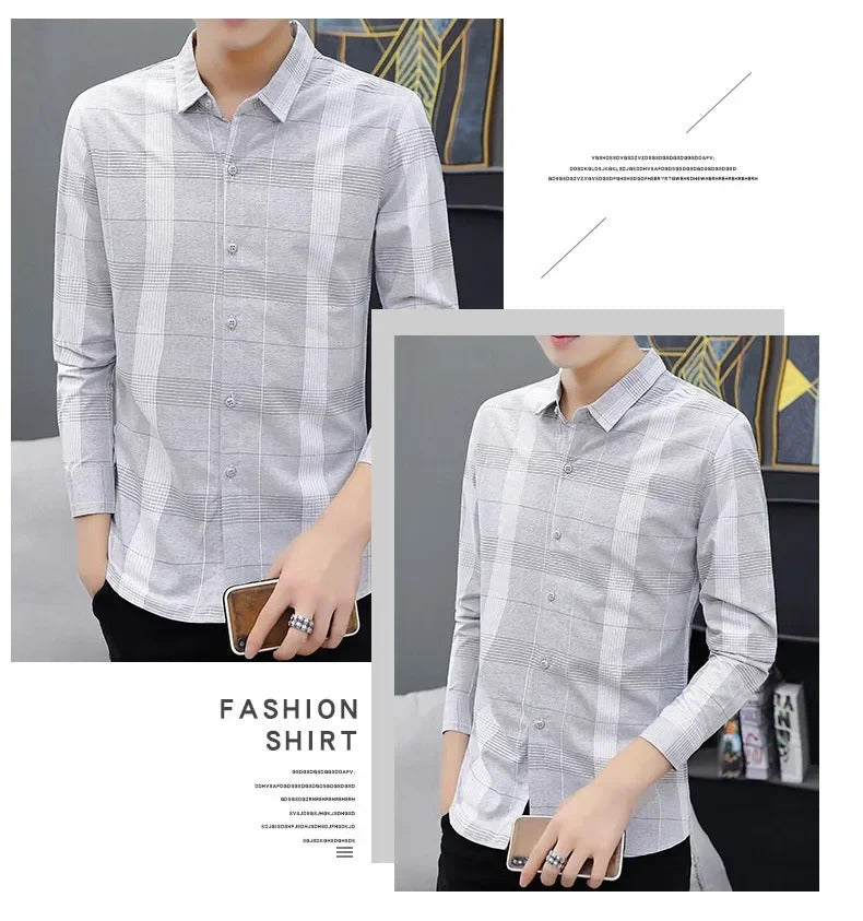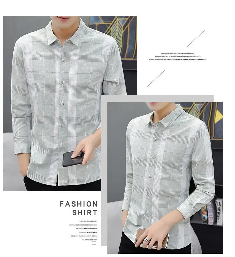 衬衫男VersatilePlaid Men's Shirt Long Sleeve Autumn Outer Wear Anxica No-Iron Lapel Shirt Autumn Collection701 Casual Scenario