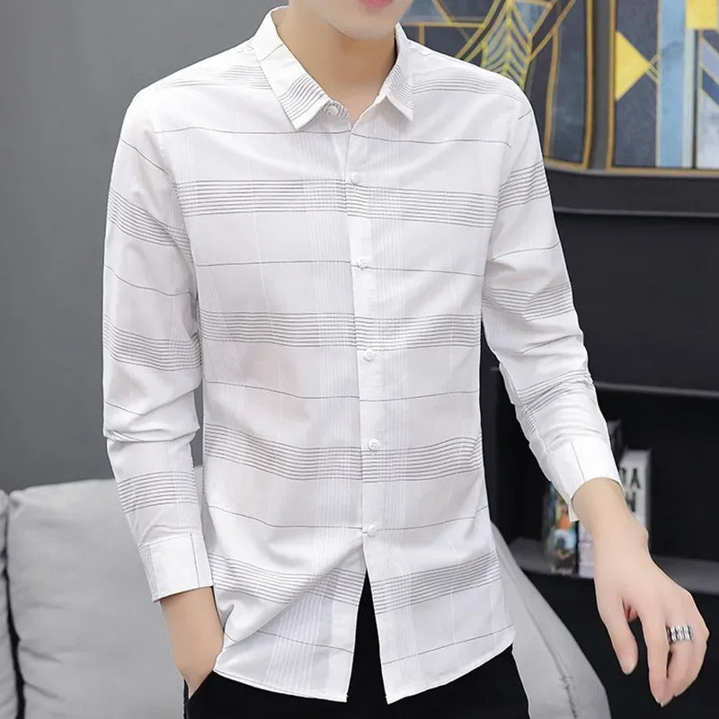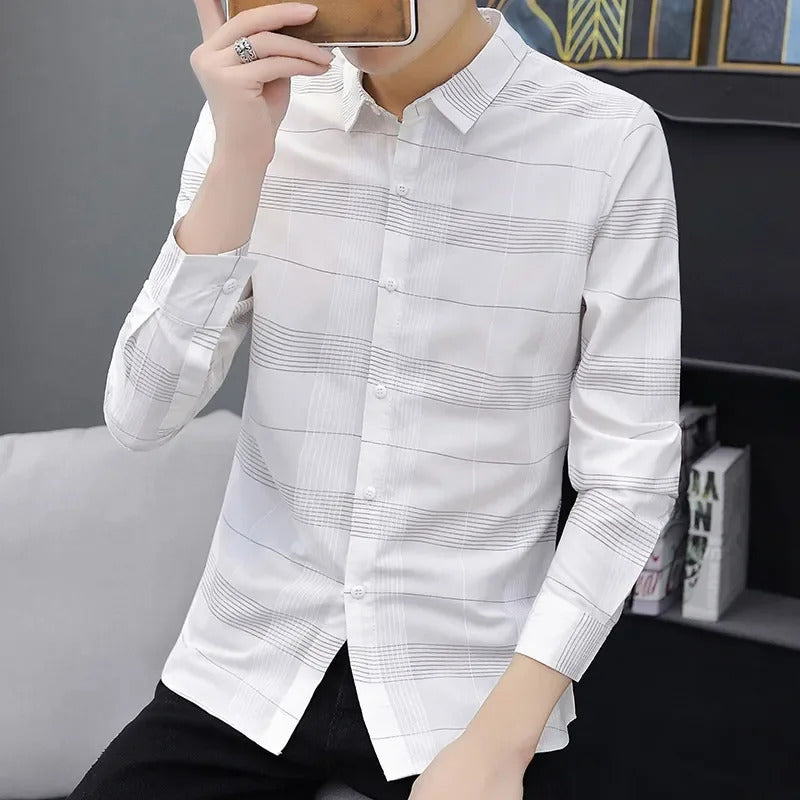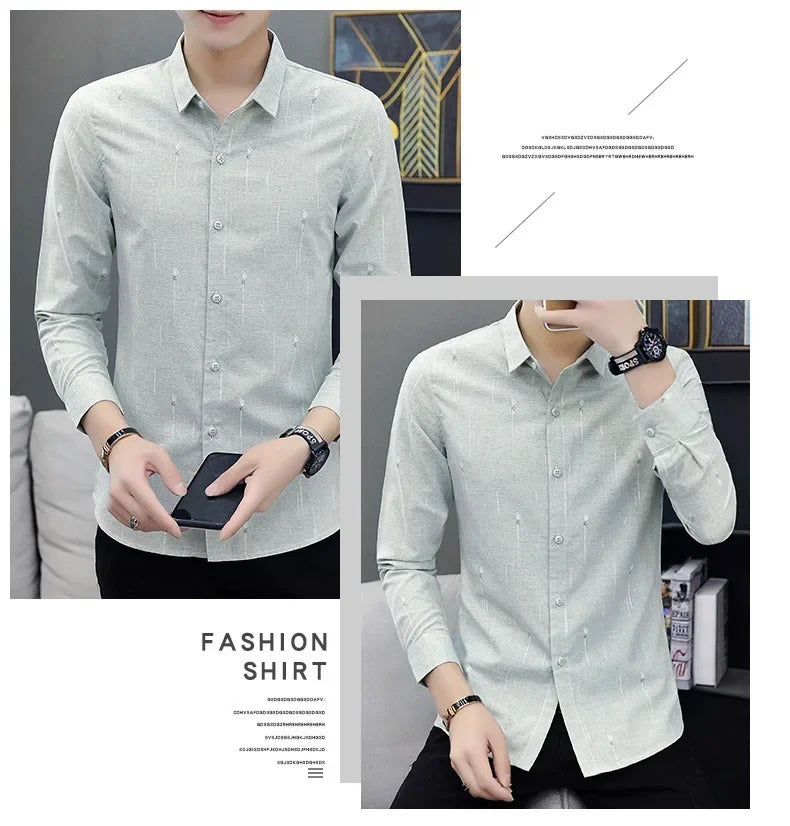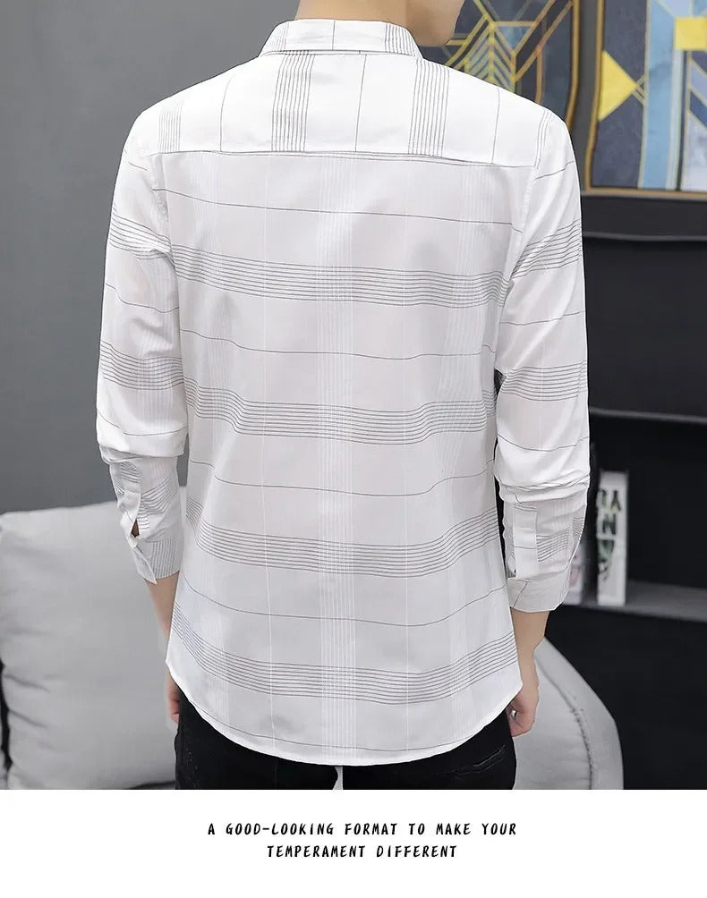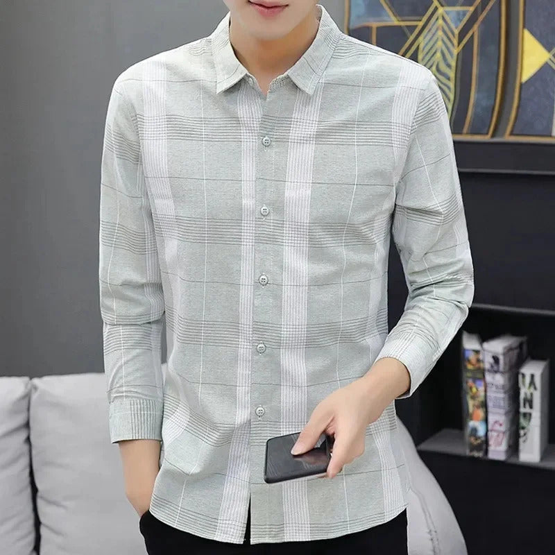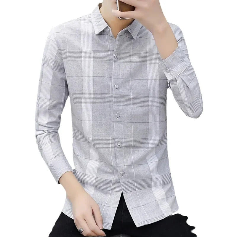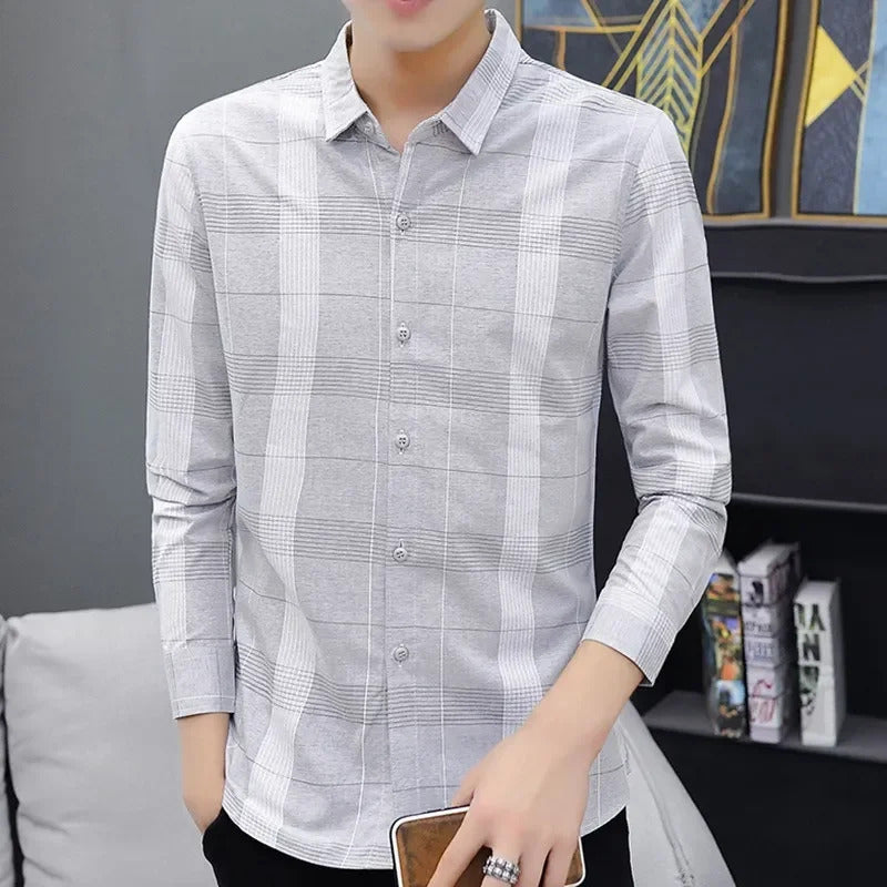 衬衫男VersatilePlaid Men's Shirt Long Sleeve Autumn Outer Wear Anxica No-Iron Lapel Shirt Autumn Collection701 Casual Scenario