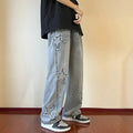 牛仔裤男Vibe American Style Men's Jeans Straight-Leg Loose-Fit Bell Bottoms Trendy Branded Casual Pants Summer High Street Style