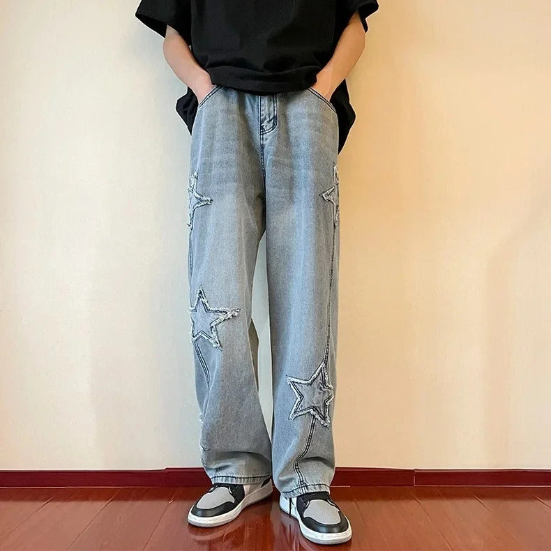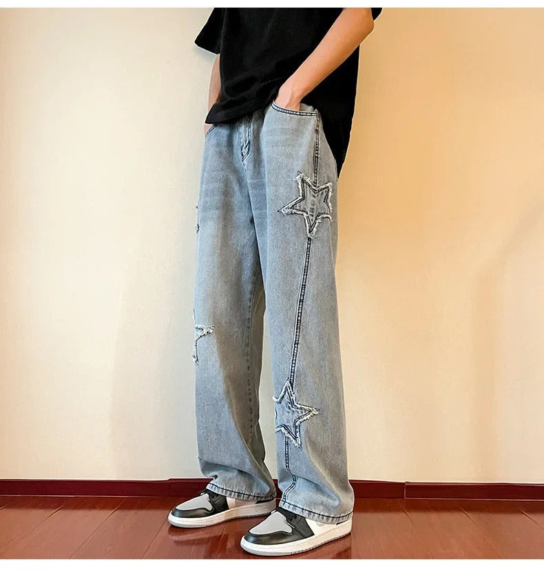• American-style Design : Embrace the essence of American fashion with these star patch jeans, exuding a high street style that's both trendy and timeless.