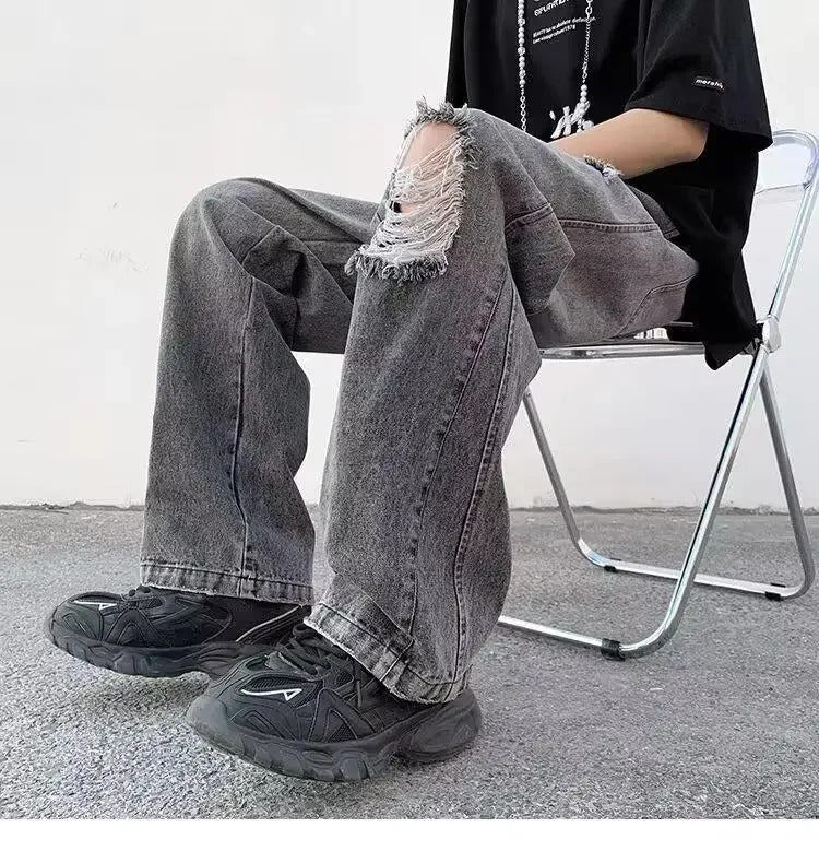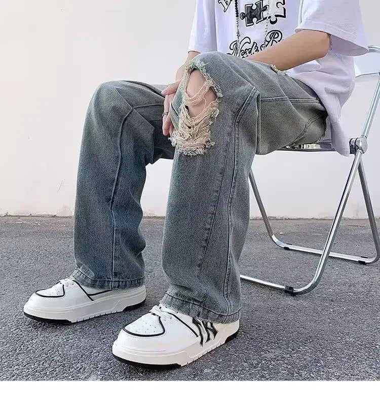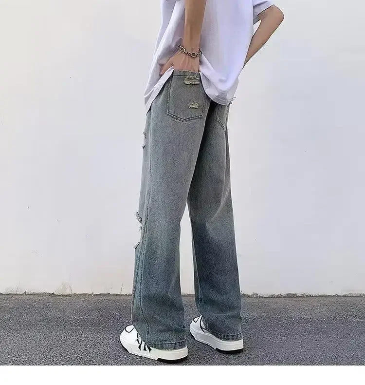 • American Style Retro Design : Embrace retro vibes with these washed gradient ripped jeans, perfect for a casual yet stylish look.