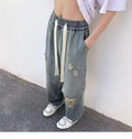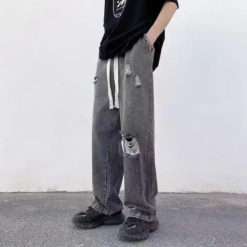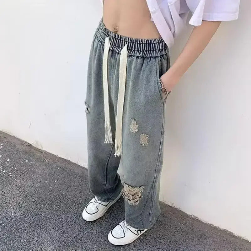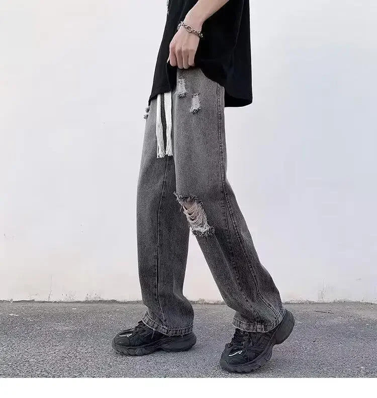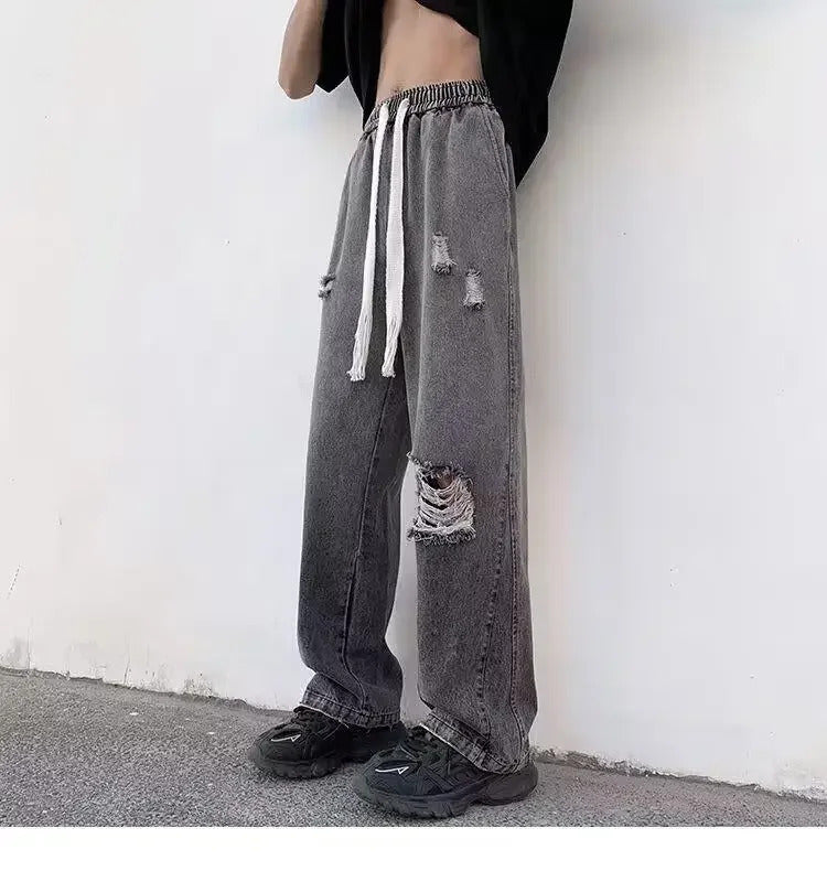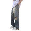 牛仔裤男Vintage American Style Men's Jeans With Drawstring Waist Straight-Leg Pants Casual Summer Fashion Trousers From China