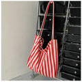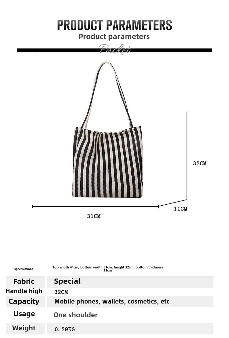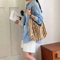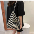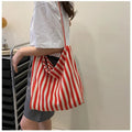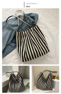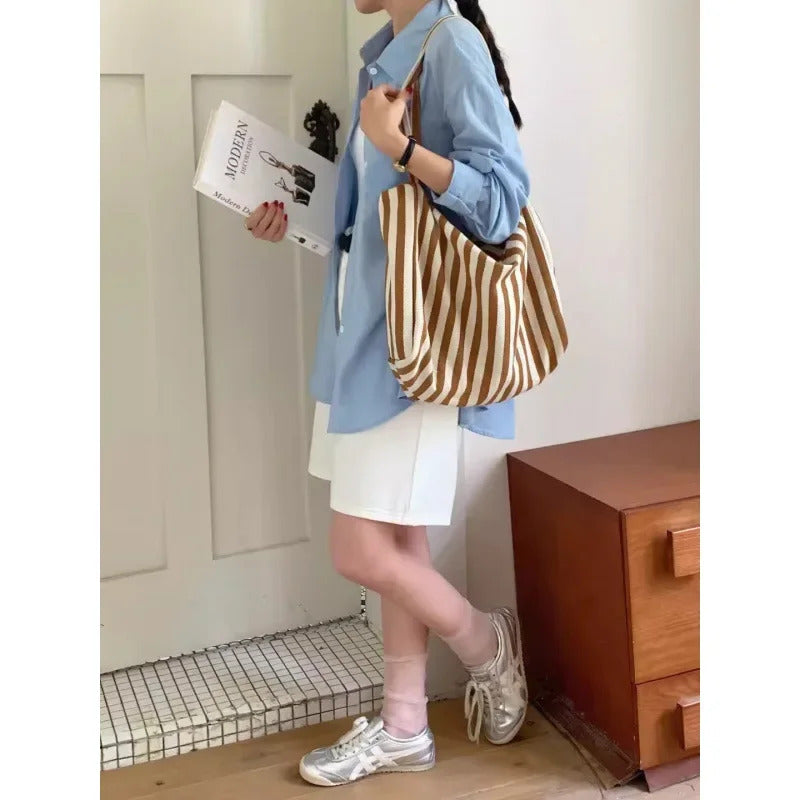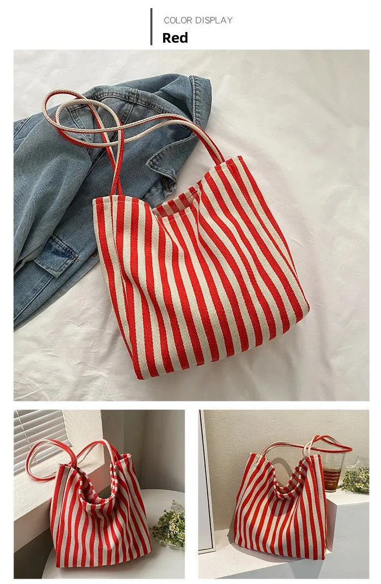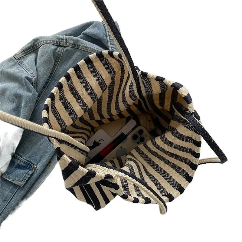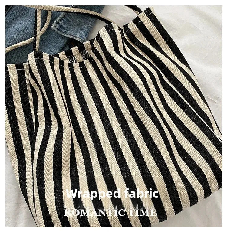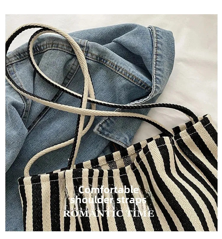 包包Vintage Artistic Korean Style Simple Fresh Striped Canvas Bag Versatile Casual Large Capacity Single Shoulder Women's Bag
